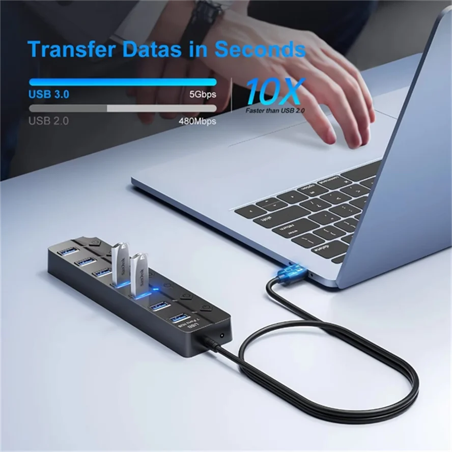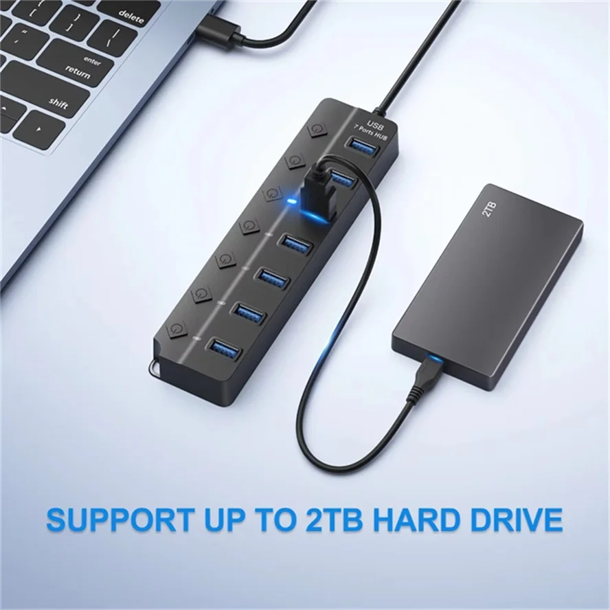 Adaptador de corriente USB 3.0 Hub 4/7 puertos divisor USB múltiple Hub USB 2,0 interruptor expansor múltiple Cable Hub estaciones de acoplamiento para PC