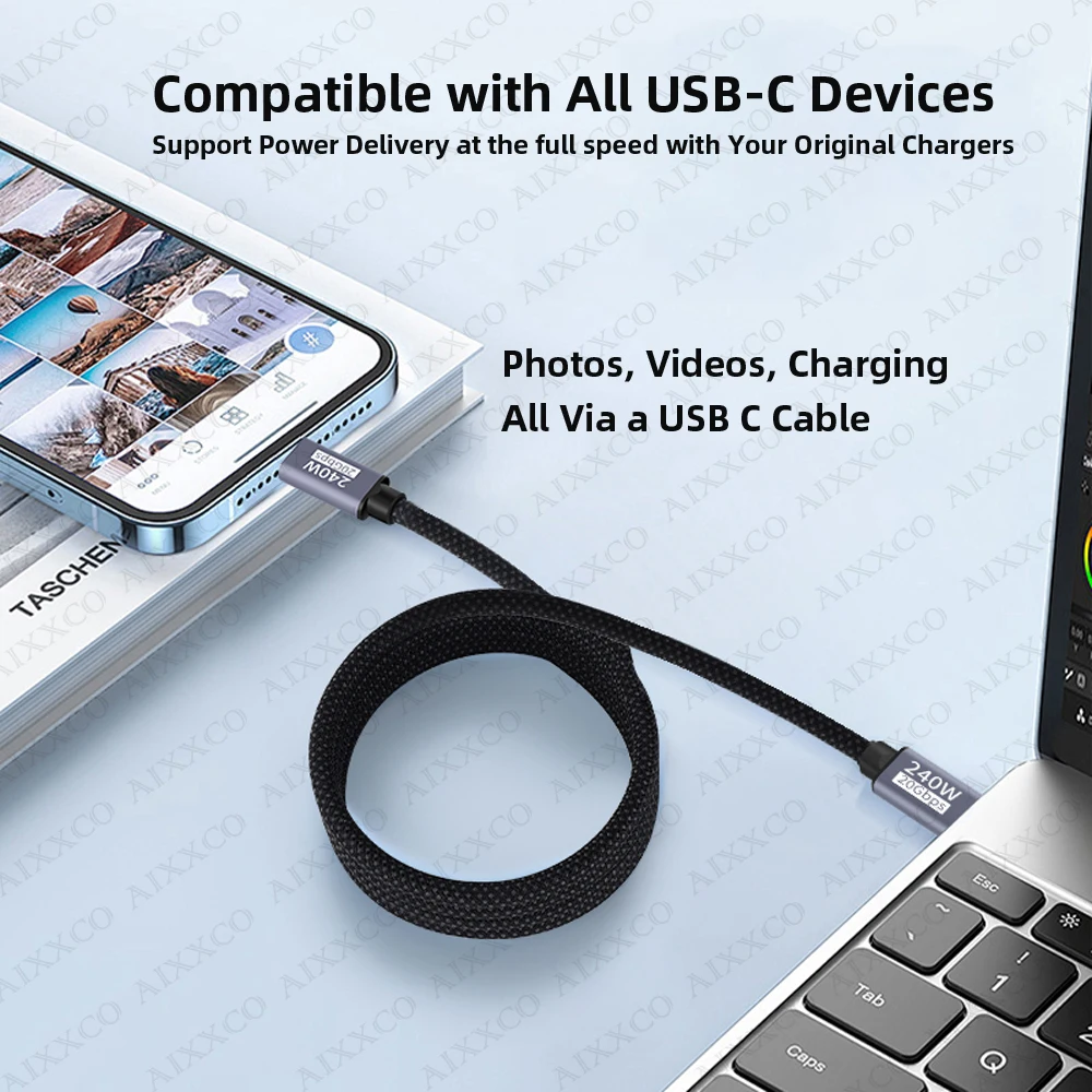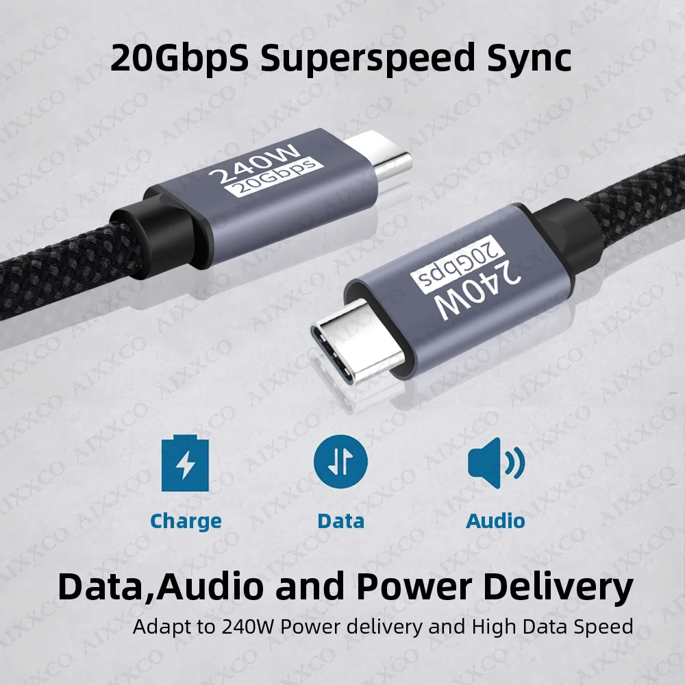Cable USB3.2 USB-C 20Gbps 240W 4K USB4.0 Cable de carga rápida tipo C súper enrollado