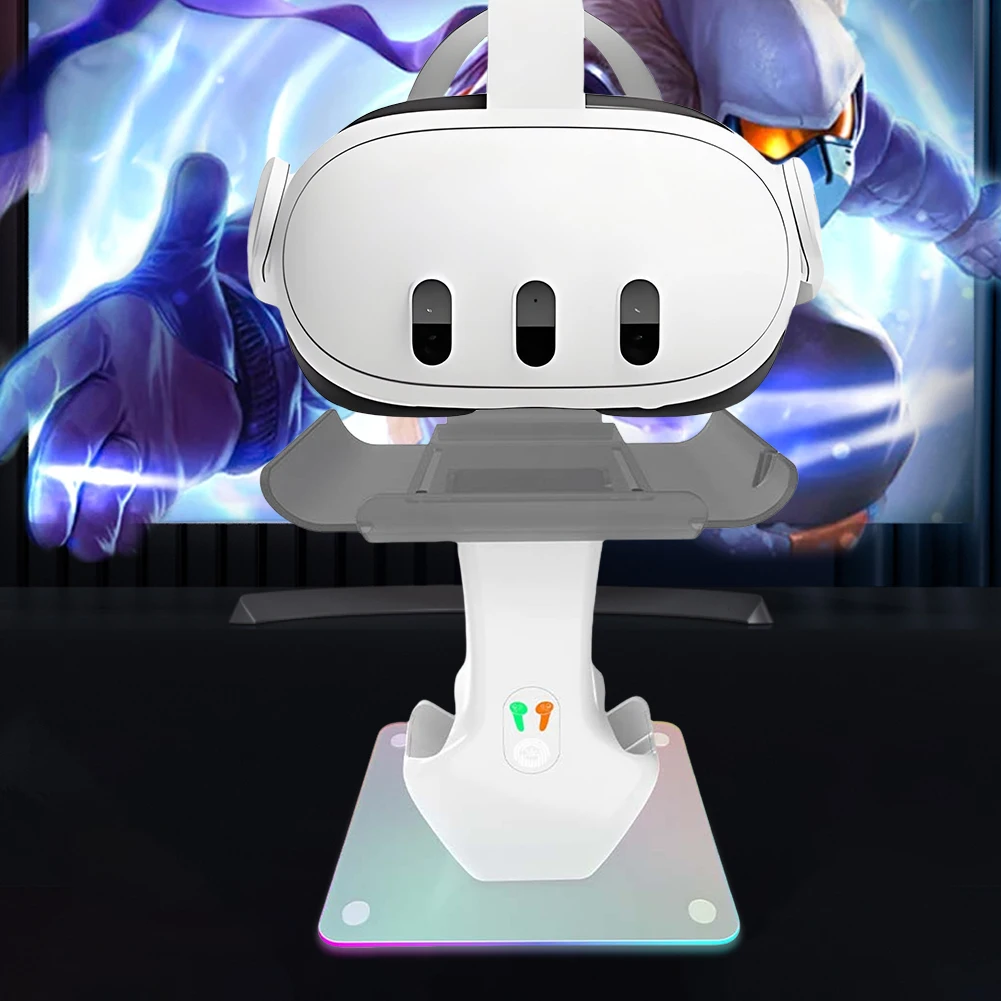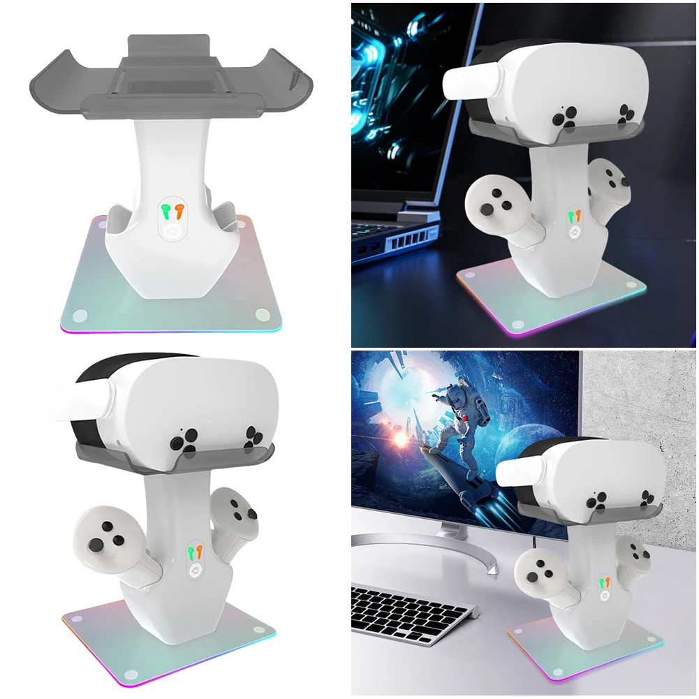 Compatible conAuriculares y controladores Quest 3S VR y Quest 3 VR.Con una iluminación RGB eficaz, combina carga y organización en un diseño elegante.