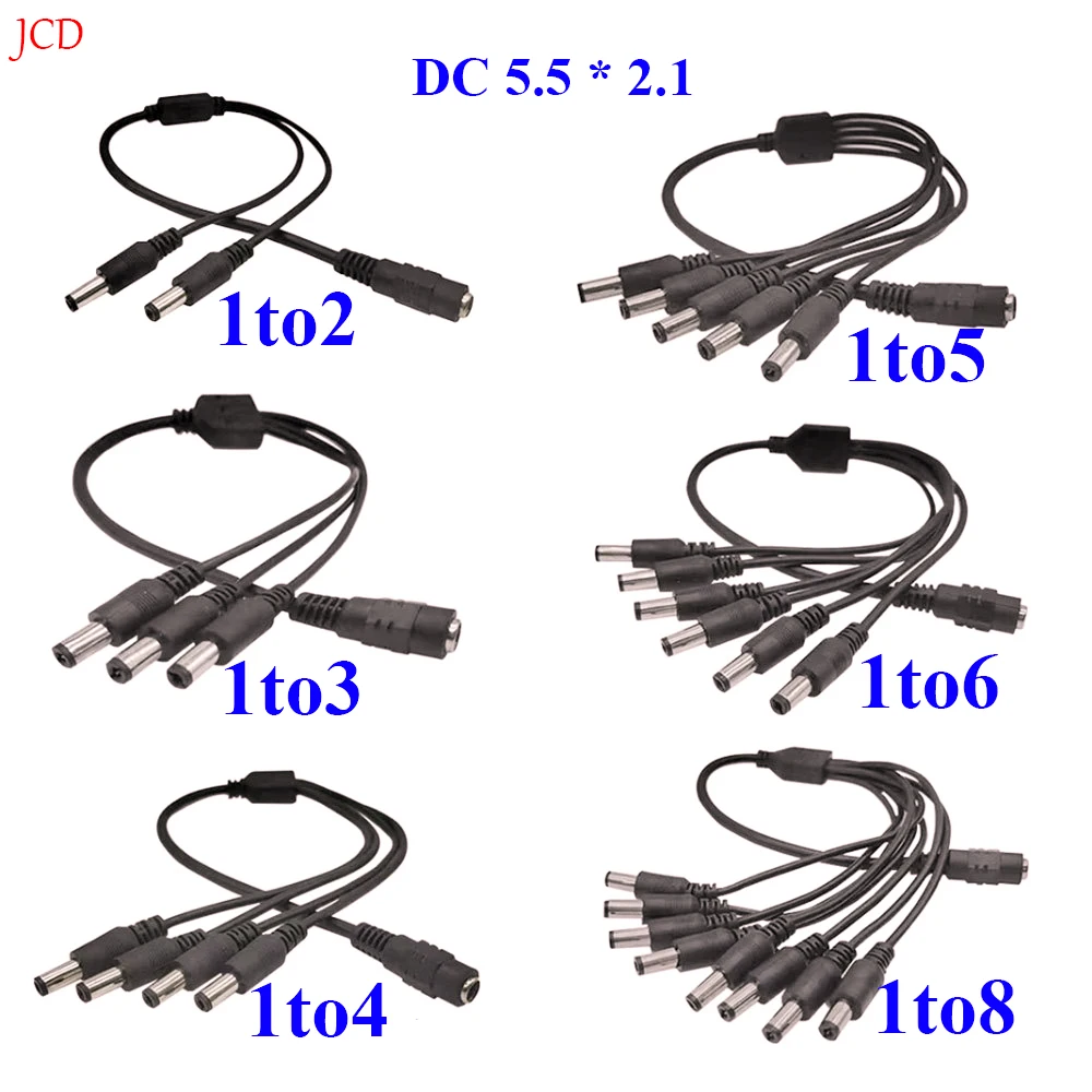 Cable divisor de alimentación CC de 5,5x2,1mm, 1 a 2/3/4/5/6/8 vías, Cable conector adaptador de corriente de 5V y 12V para luces de tira LED, cámara CCTV