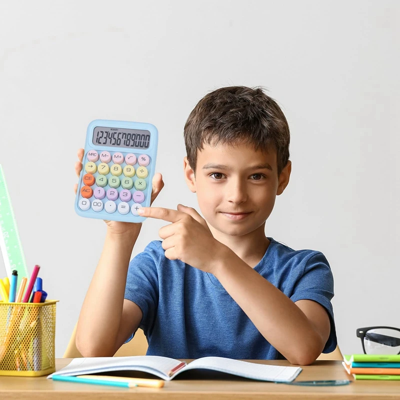 Calculadora mecánica: una calculadora de escritorio colorida única para escribir dulces con grandes teclas de botón redondas retro que brindan un toque cómodo y facilitan cada cálculo (1 batería AAA empaquetada individualmente incluida).