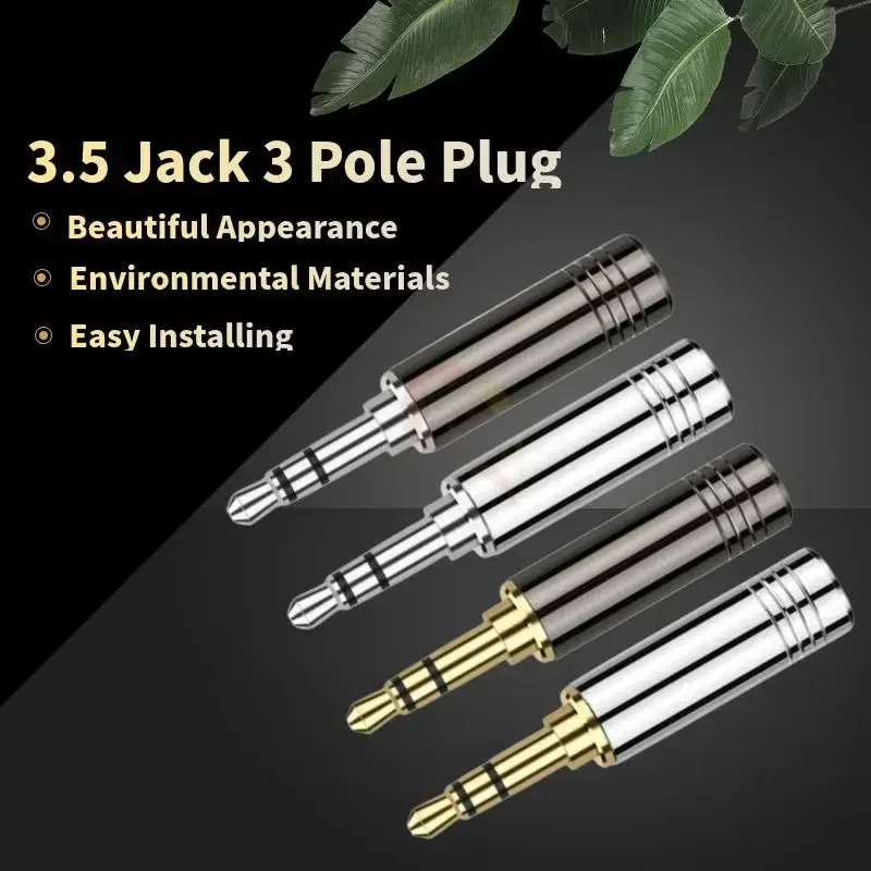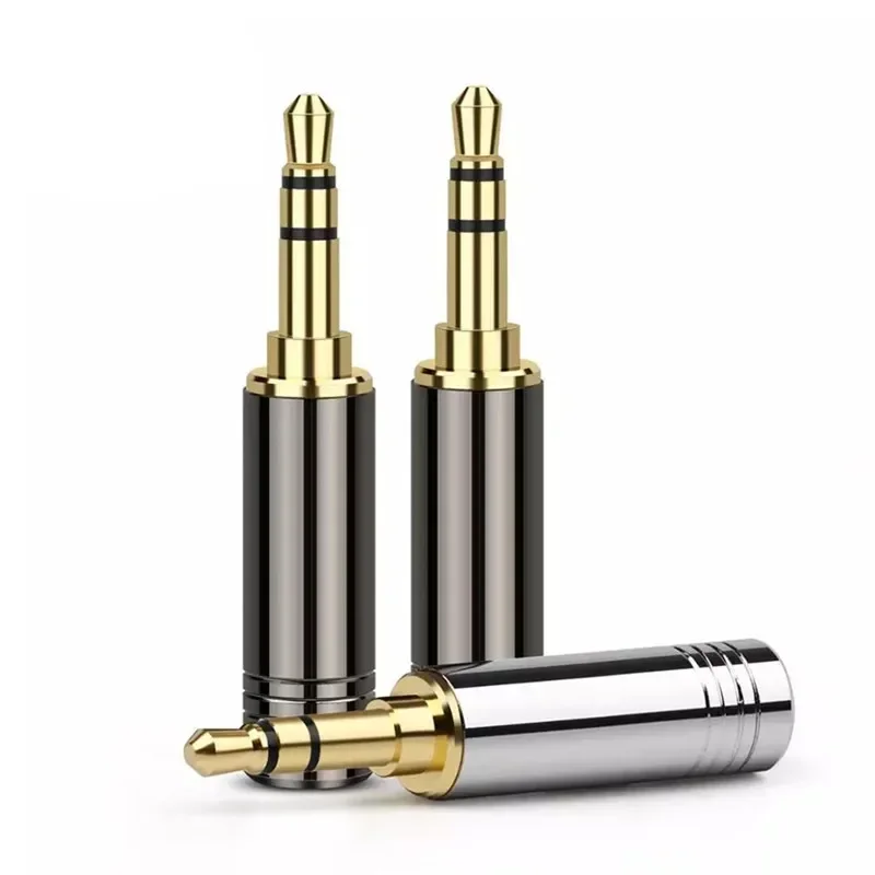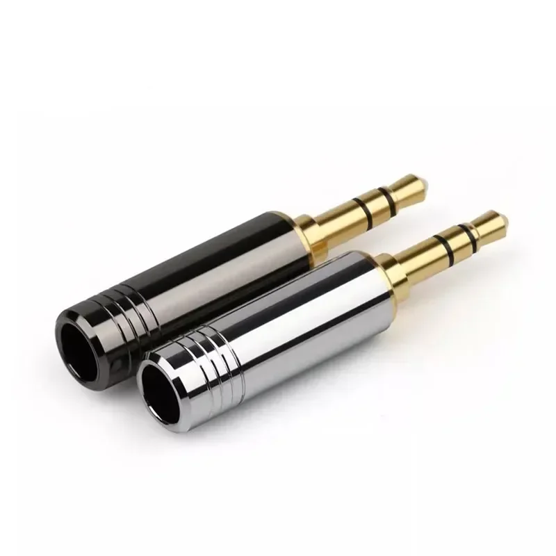 Conector estéreo de 3,5mm, conectores de Audio de 3 polos, conector HiFi para auriculares, rodio dorado para soldar, Cable para auriculares DIY, negro y plateado