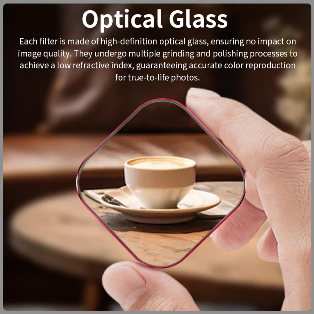 2.Vidrio óptico de alta calidad:Cada lente y filtro de este juego de filtros para lentes de cámara está hecho de vidrio óptico de alta definición, lo que garantiza que no haya impacto en la calidad de la imagen.Múltiples procesos de pulido y pulido crean un bajo índice de refracción para una reproducción precisa del color en su fotografía.