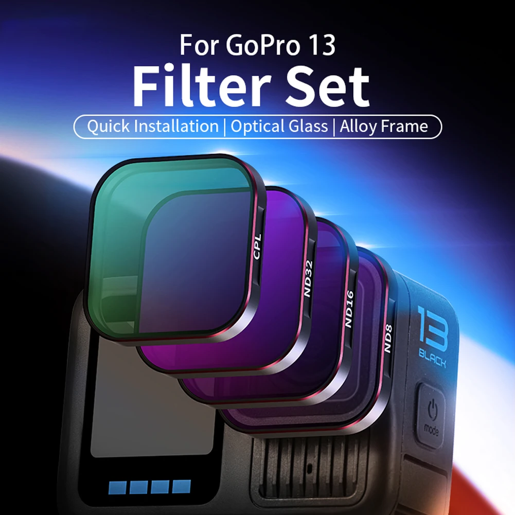 CPL ND8 ND16 ND32 Kit de filtro de Color rojo Polarizador de vidrio óptico Filtro de densidad neutra Filtro de lente polarizadoraompatible conAccesorios para cámara GoPro Hero 13 12 11
