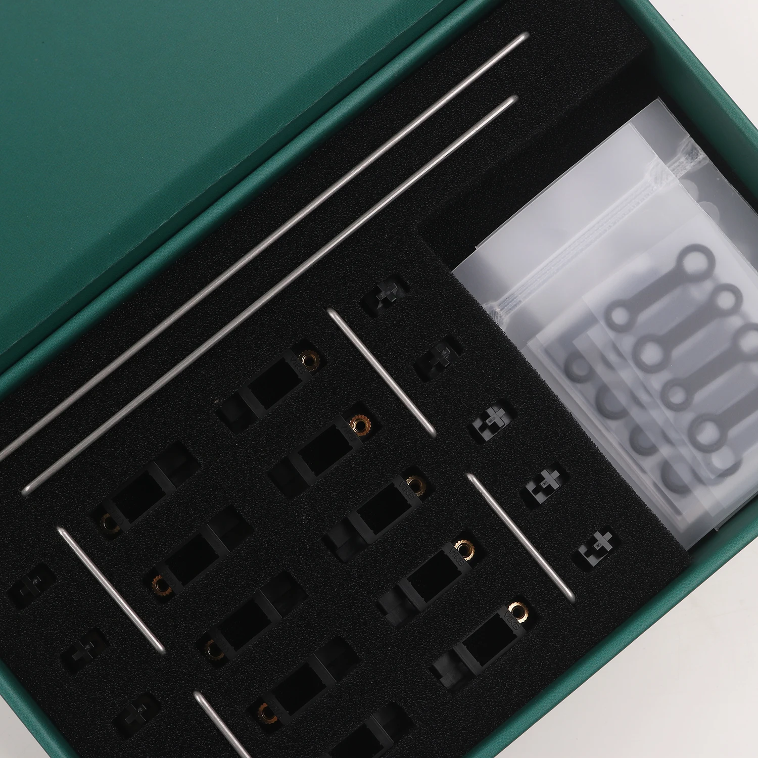 104 set Include: 2U x 7,6.25U x1, extra 7U wire x1, Stabilizers foam sticker, screws, and washers
