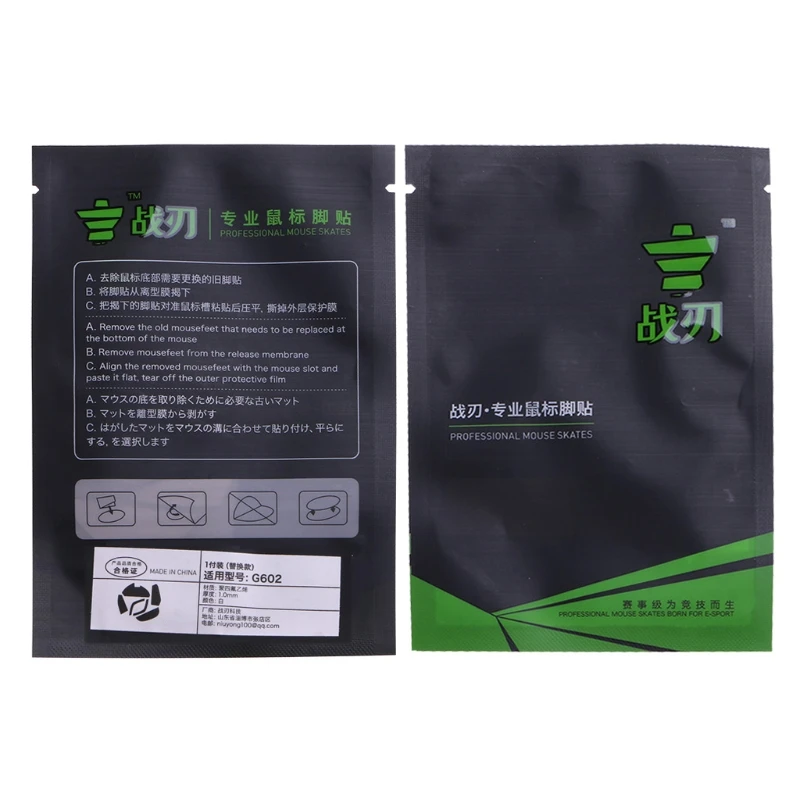 Nota:Este producto es un pie de ratón de repuesto. Después de quitar la pegatina original del pie del ratón, limpie la parte inferior de la cáscara con el algodón de alcohol que se adjunta en el paquete y luego pegue los nuevos pies del ratón.