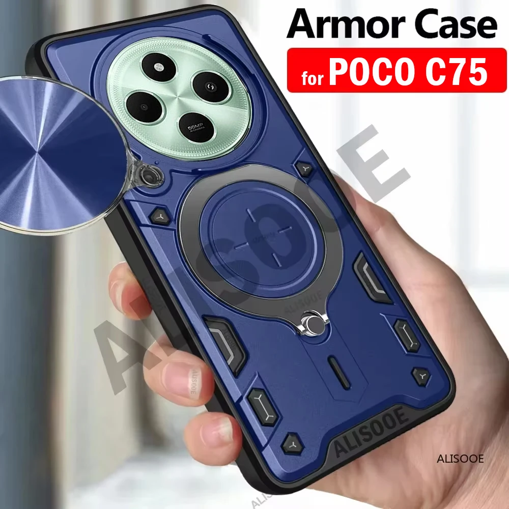 Funda de cámara deslizante para POCO C75, Funda de armadura con lente deslizante, soporte de anillo magnético, Funda de teléfono para Xiaomi POCO C75 Capa