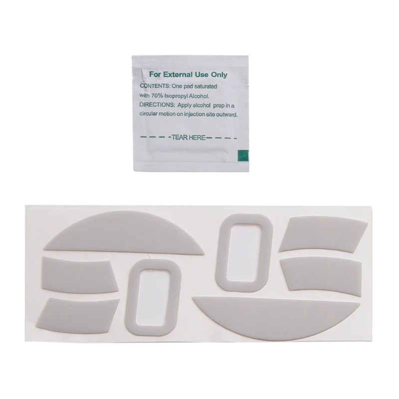 Este producto es un pie de ratón de repuesto.Después de quitar la pegatina de la pata del ratón, limpie la parte inferior de la carcasa con el algodón que se adjunta en el paquete y luego pegue las nuevas patas del ratón.