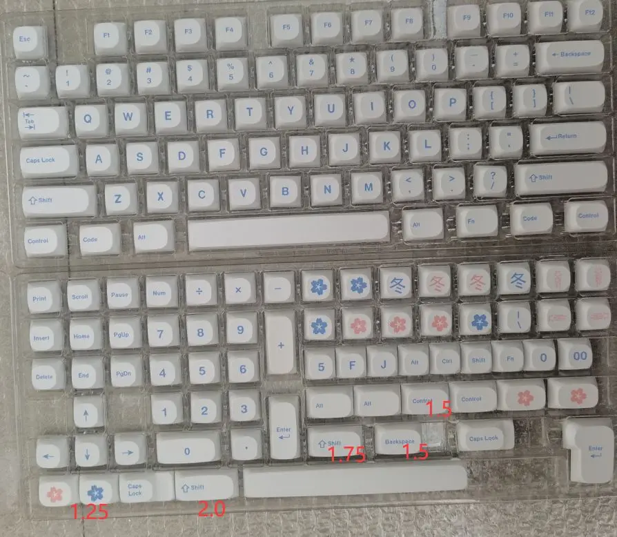 Number of keys: 142Keys, includes 1.75U 2U shift,1.5U alt ctrl, 1.25U 1.5U enovl,ISO Enten 6.25U spacebar