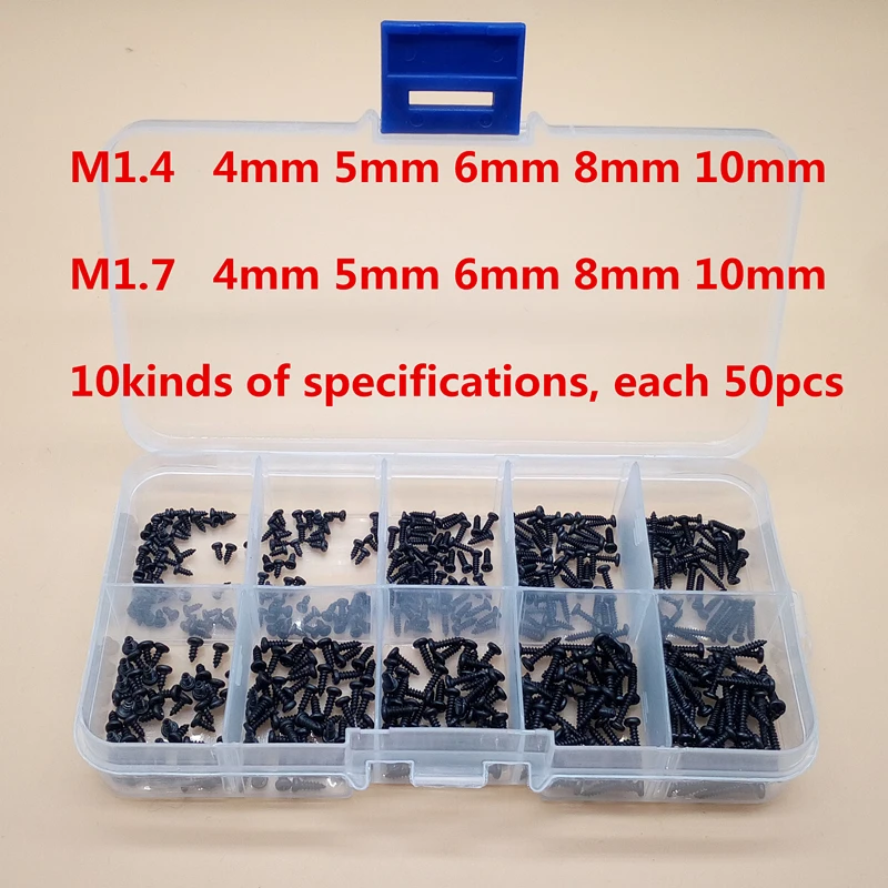 500 Uds M1.4 M1.7 cabeza Phillips Micro tornillos cabeza redonda autorroscantes electrónicos pequeños tornillos de madera Kit