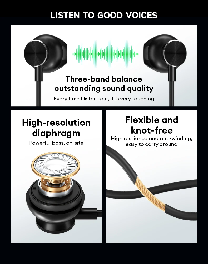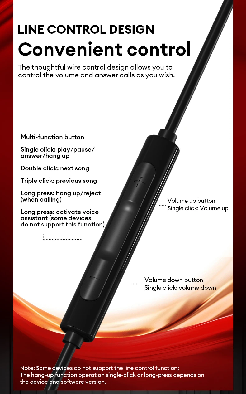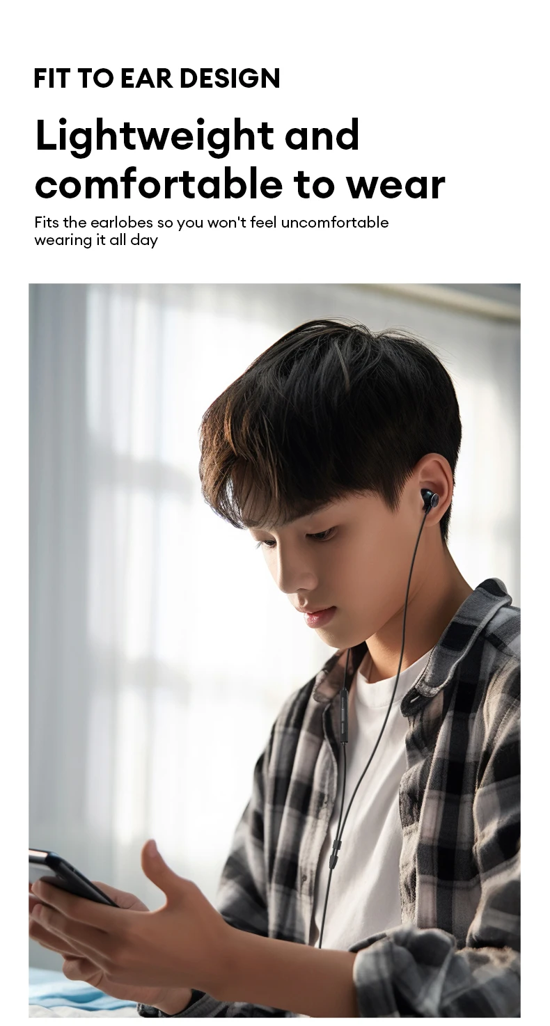 El cuidadoso diseño de control por cable le permite controlar el volumen y contestar llamadas como desee.