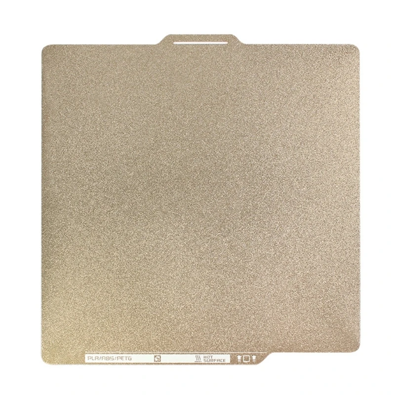 Esta placa de acero cuenta con un recubrimiento en polvo PEI de doble cara que no solo mejora la adhesión durante la impresión sino que también garantiza una liberación fácil una vez completada la impresión, lo que la hace para uso repetido.