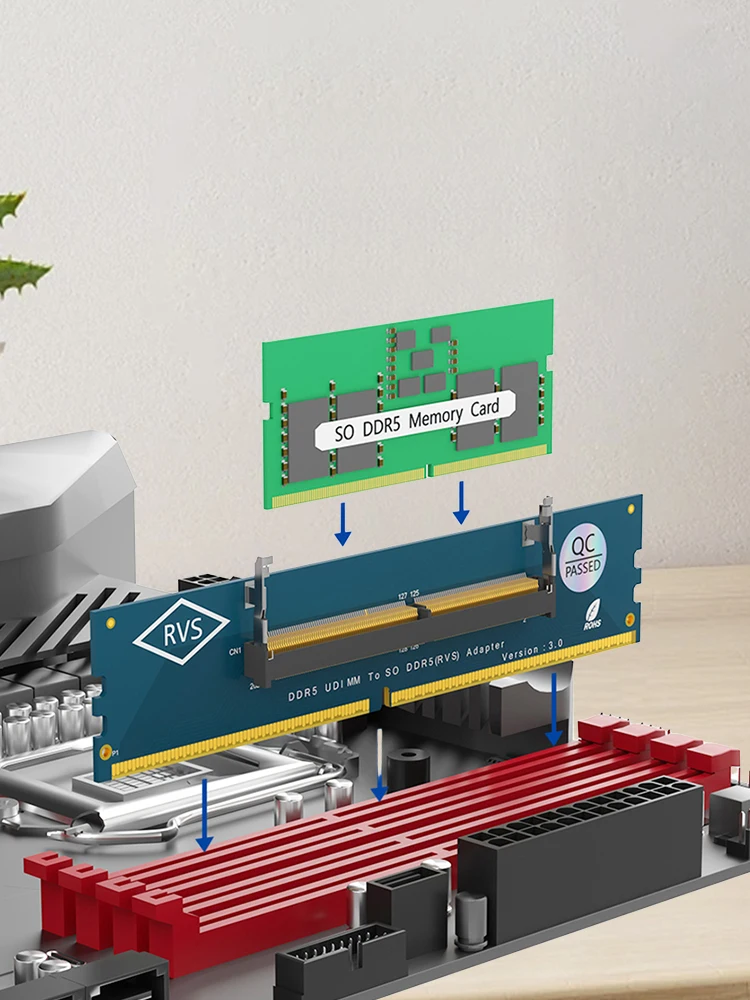 Característica:1.Compatibilidad versátil:El adaptador SO DDR5 RAM para computadora portátil a U-DIMM DDR5 de escritorio le permite convertir fácilmente la memoria SO-DIMM de computadoras portátiles para juegos en un formato DIMM estándar para uso de escritorio, maximizando sus opciones de memoria para un rendimiento mejorado.