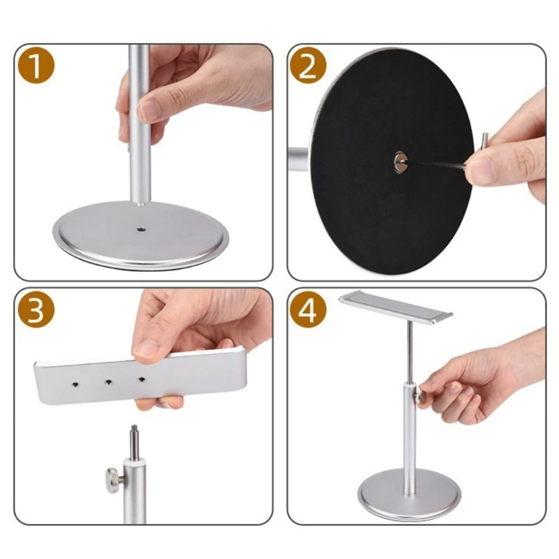Con una base sólida, altura ajustable de 250 a 178 mm y una parte superior de tres orificios, este soporte ofrece estabilidad y personalización para sus auriculares.