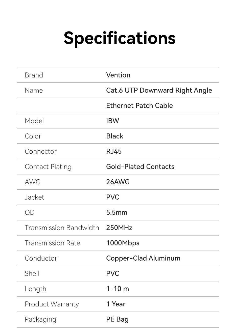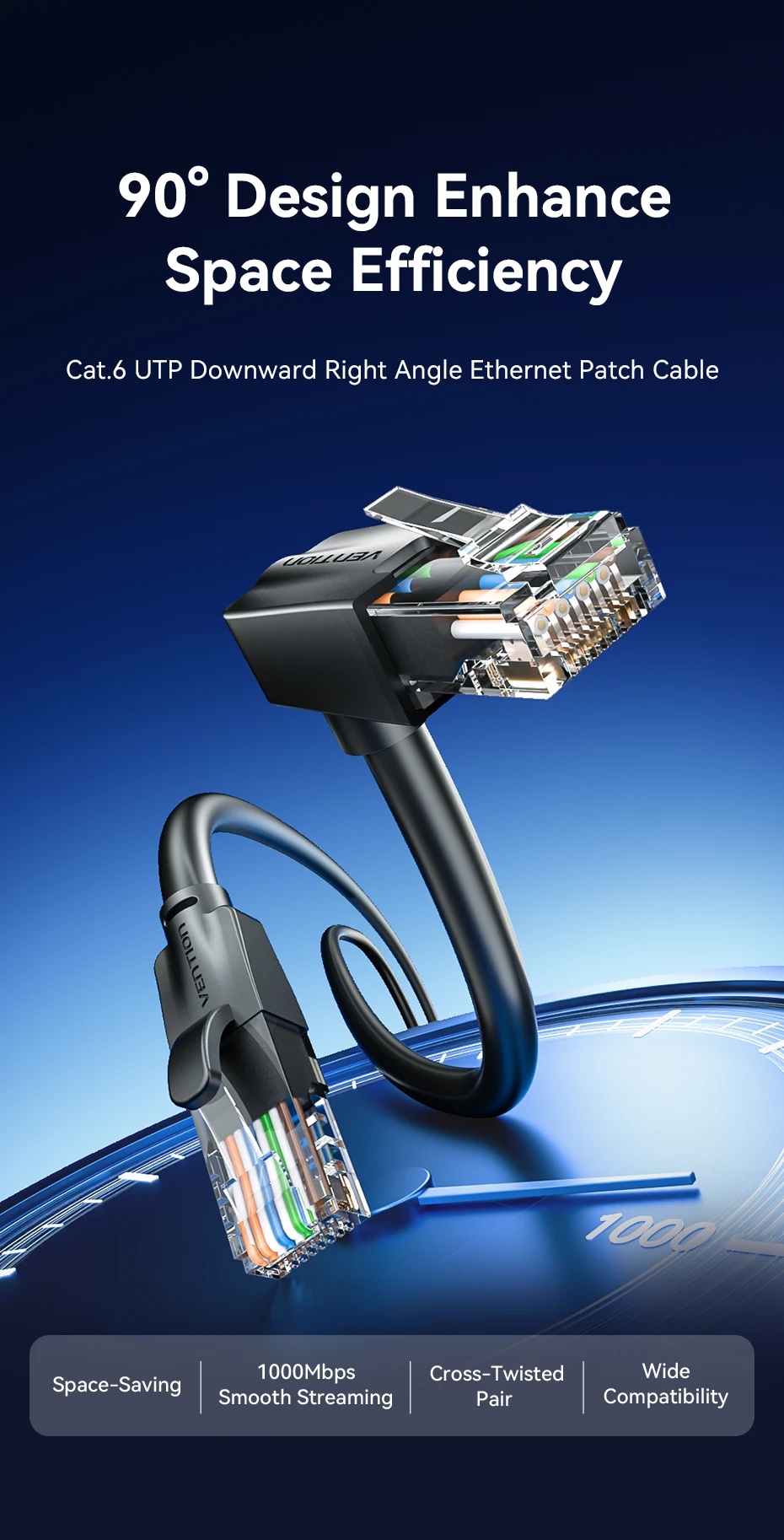 Vention-Cable Ethernet Cat6 UTP, Cable de conexión de ángulo recto Downard ...