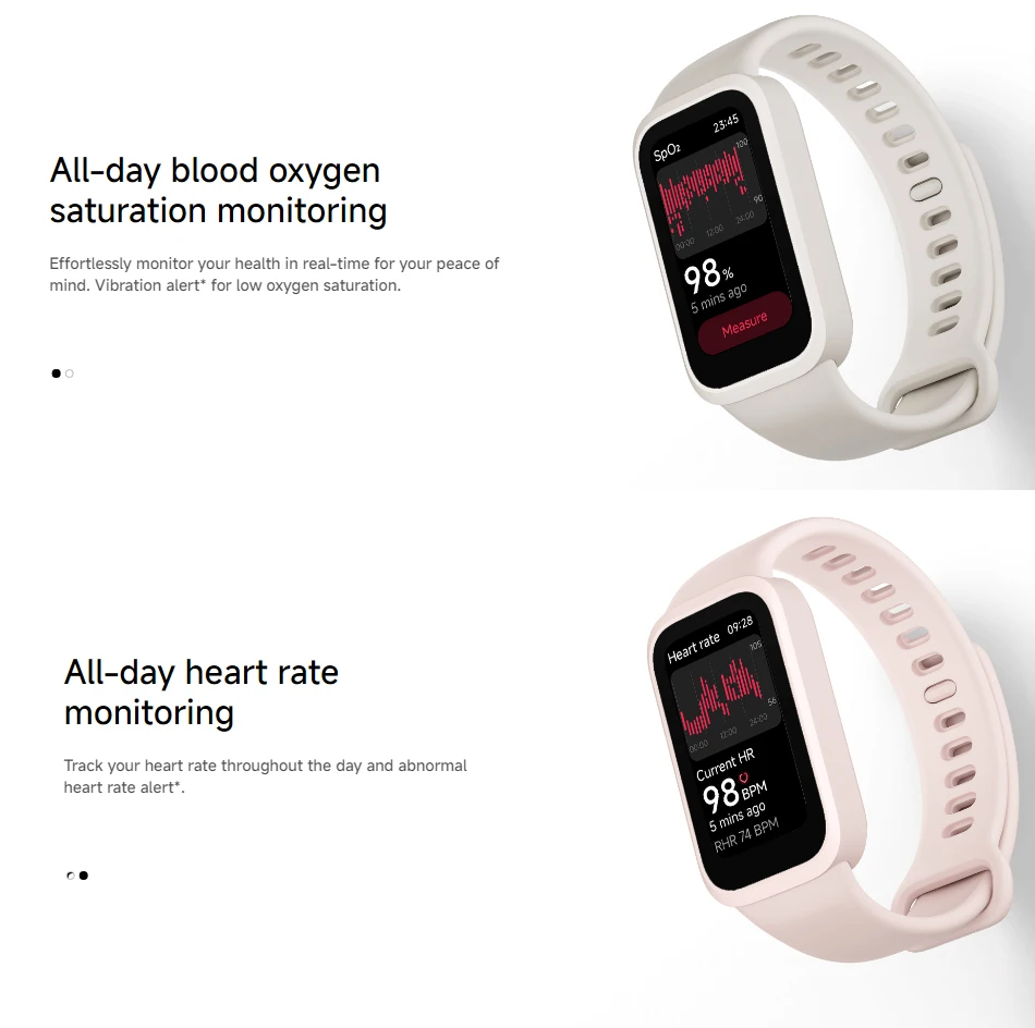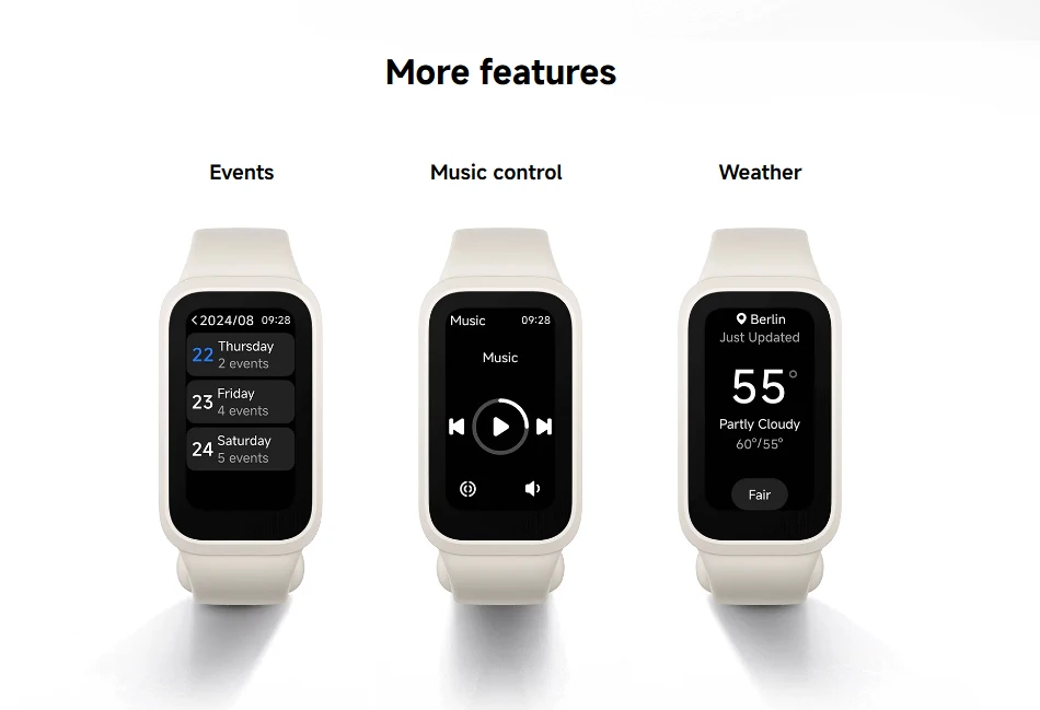 Health --- Heart rate monitoring、SpO₂ tracking、Sleep tracking、Women's health management、Stress measurement