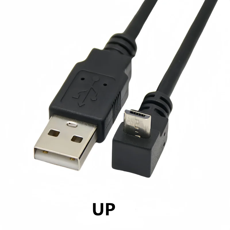 Cable de carga de datos Micro USB macho a USB con ángulo de 90 grados, 0,25 m, 1 m, 1,5 m, para teléfono celular y tableta