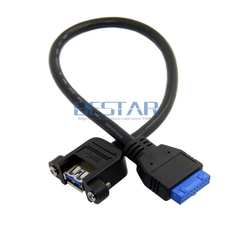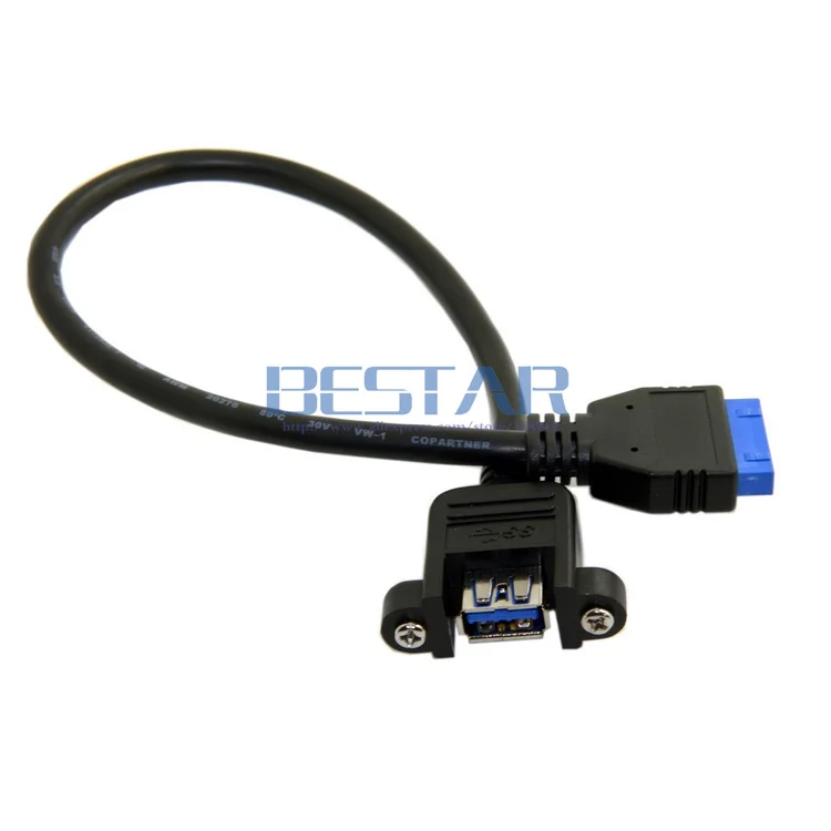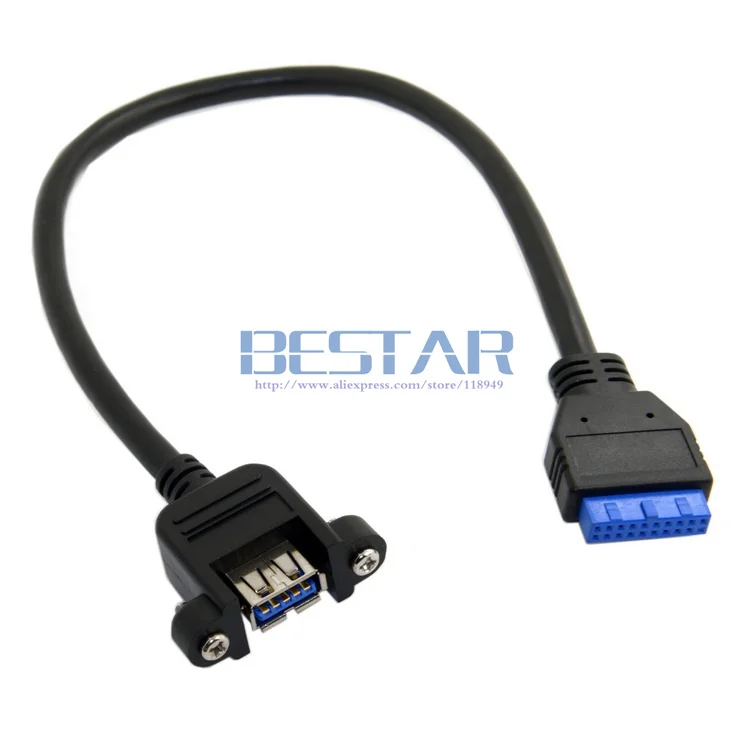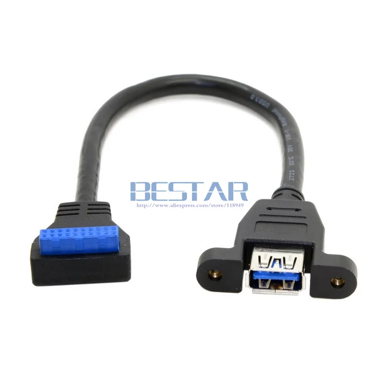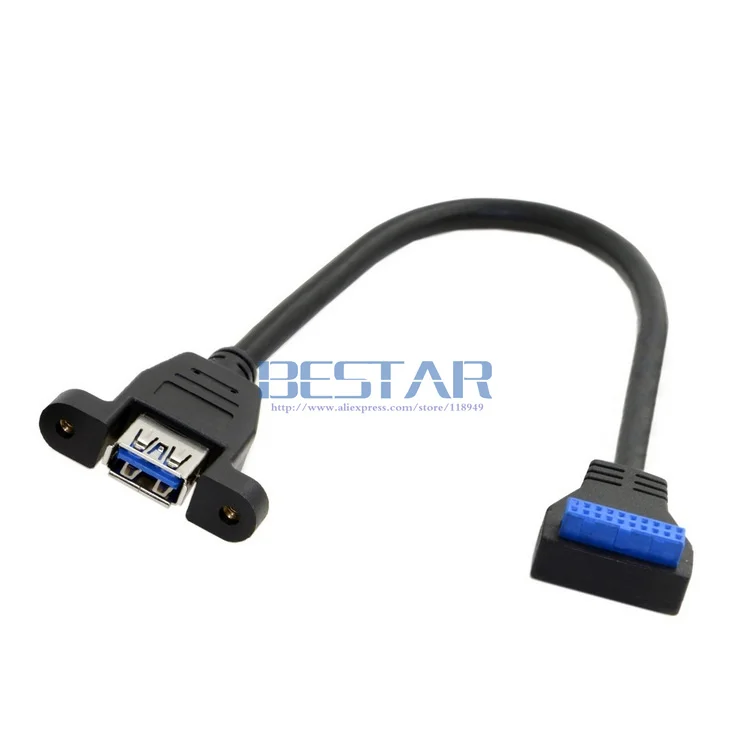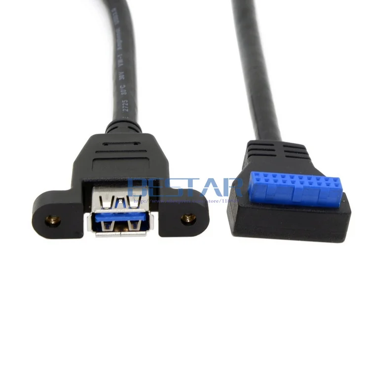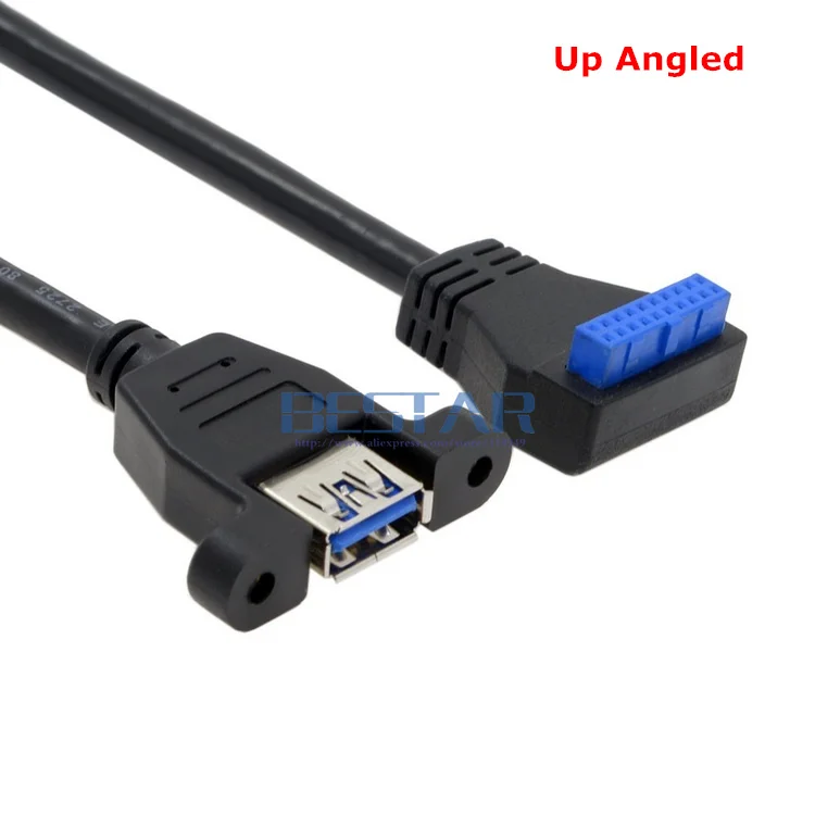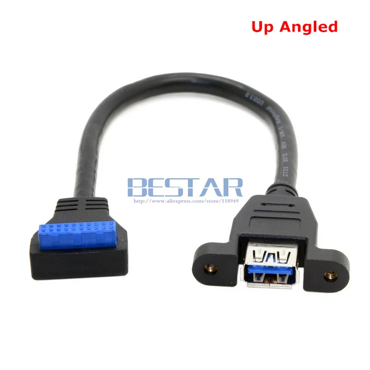 Comprar 0,25 M USB 3,0 puerto único A hembra tipo de montaje con tornillo a placa base en ángulo recto, arriba y abajo Cable de cabecera de 20 pines y 20 pines 25 cm