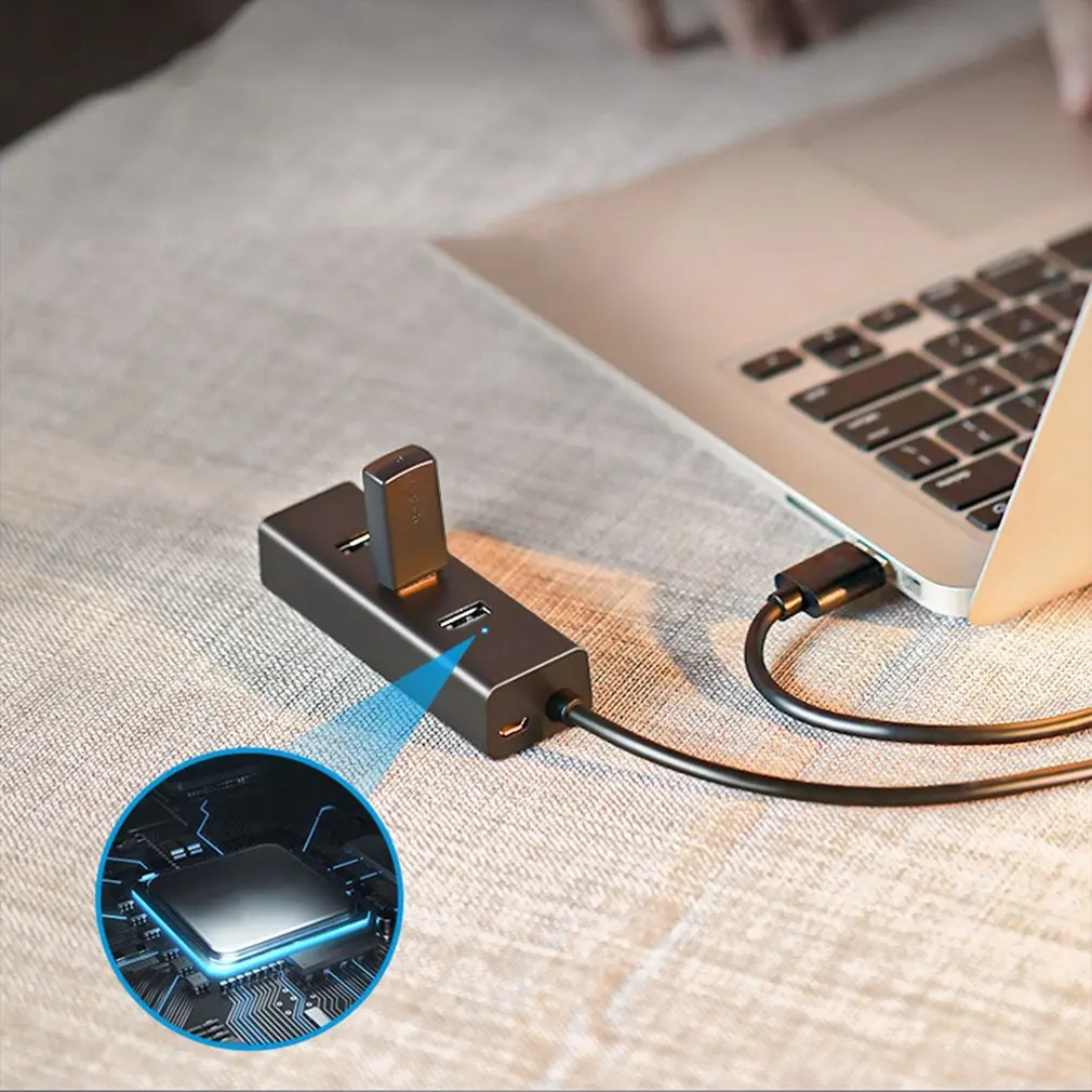 2.Plug and Play: este concentrador amplía 4 puertos USB, cada uno con una fuente de alimentación máxima de 500Ma, utiliza el controlador USBHUB de segunda generación, no requiere controlador, plug and play, admite conexión en caliente y admite múltiples dispositivos USB.