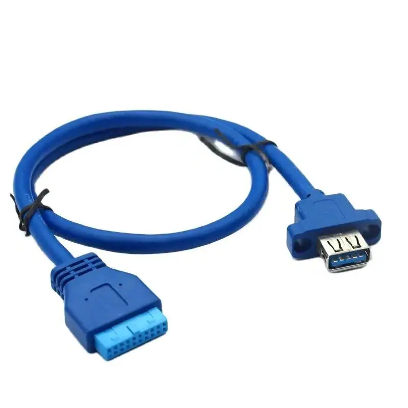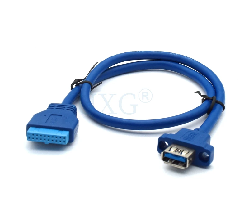 Comprar 0,5 m 0,75 m puerto único USB 3,0 hembra montaje con tornillo tipo Panel a placa base Cable de 20 pines para chasis de cuadro principal de computadora