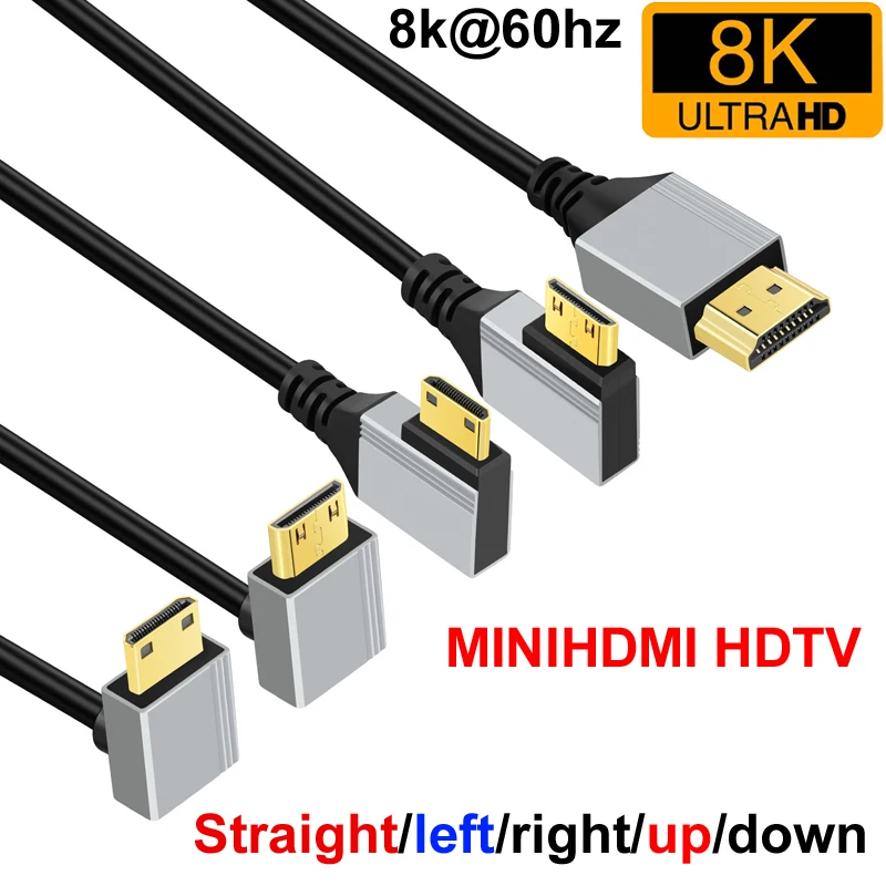 Cable HDMI MinHDMI de 0,5 m/1 m, 8K a 60 Hz, 2,1 minutos, ángulo recto/izquierdo/derecho/arriba/abajo para ordenador portátil, Monitor, cámara HDTV, tableta