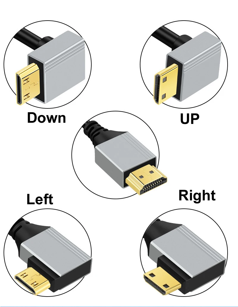 Comprar 0,5 m/1m 8K @ 60Hz 2,1 Min HDMI MinHDMI Cable 90 grados recto/izquierdo/derecho/arriba/abajo ángulo para ordenador portátil Monitor de PC cámara HDTV tableta