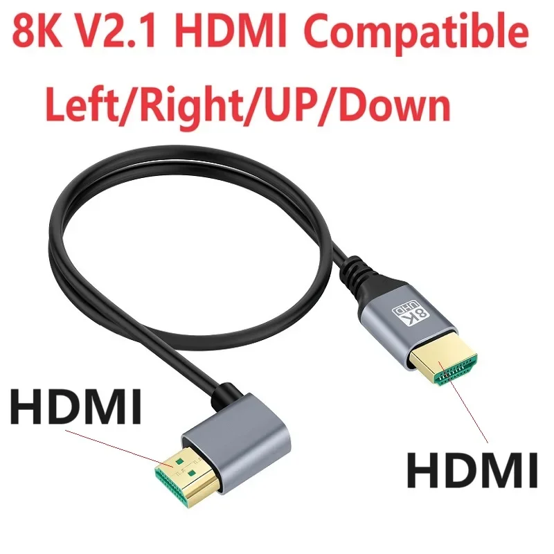 Comprar 0,5 M 1M 90 grados ángulo izquierdo/derecho/arriba/abajo 8K Compatible con HDMI 2,1 Cable 8K @ 60Hz 4K @ 120Hz 48Gbps Cable de extensión