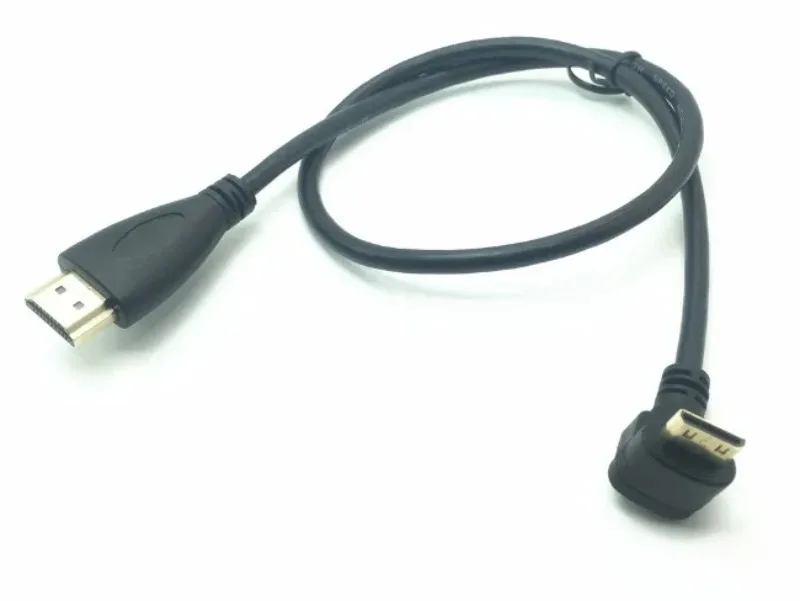 0,5 M ángulo de 90 grados Mini HDTV tipo C a tipo A macho M/M Cable conector V1.4 para cámara de vídeo DSLR Monitor LCD