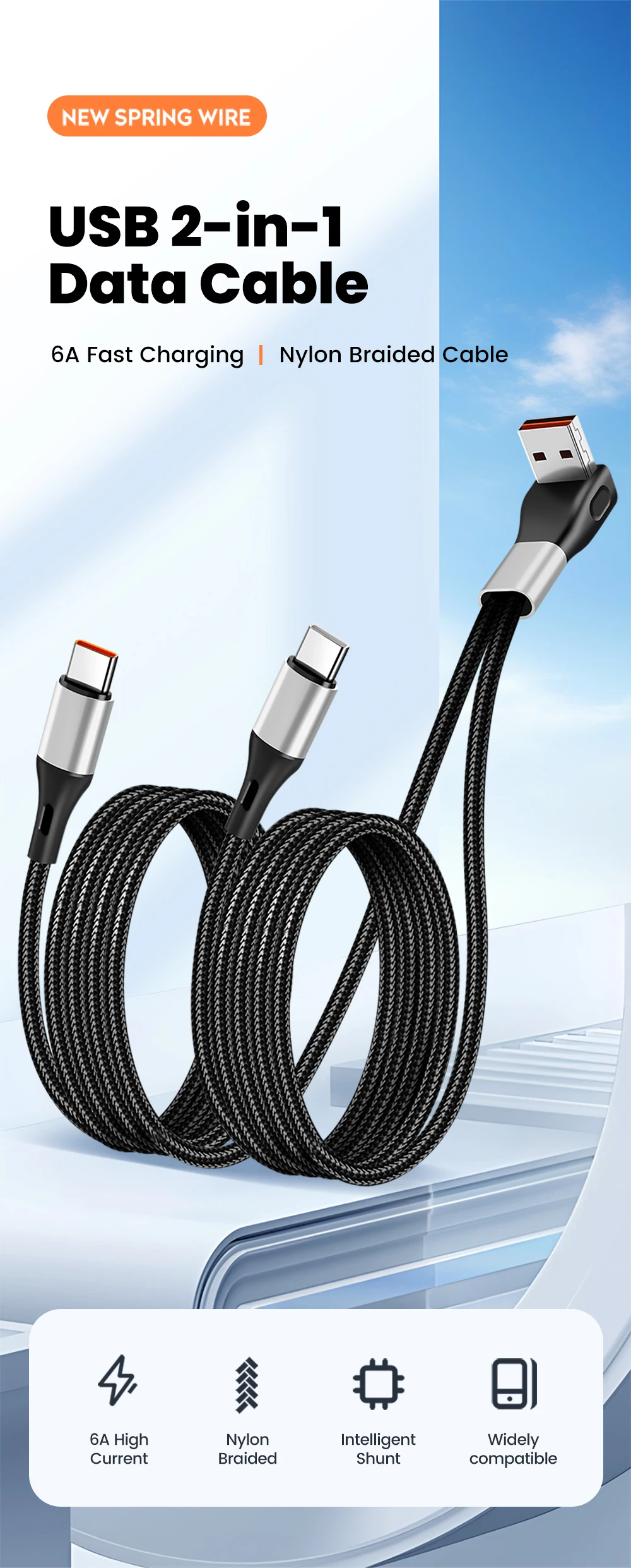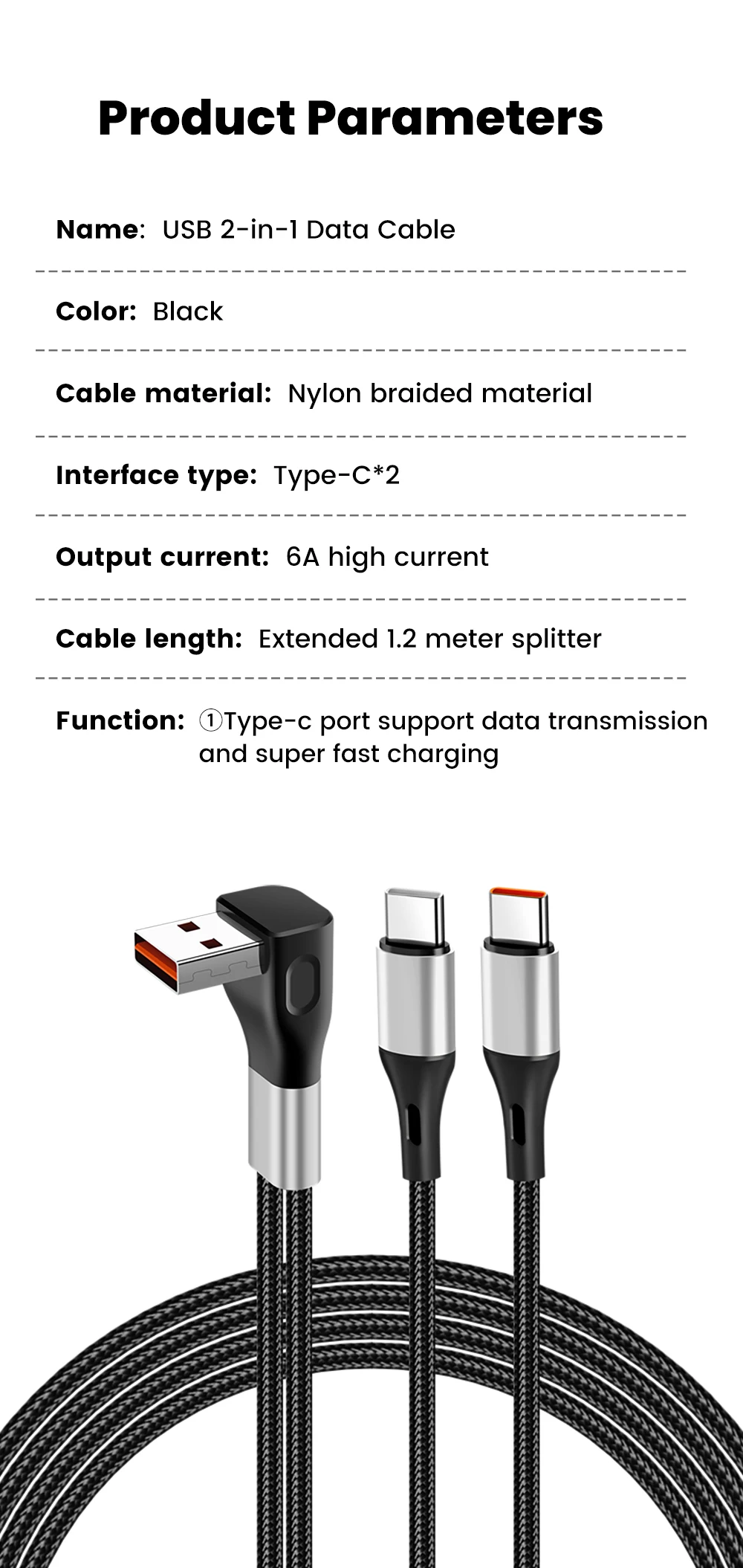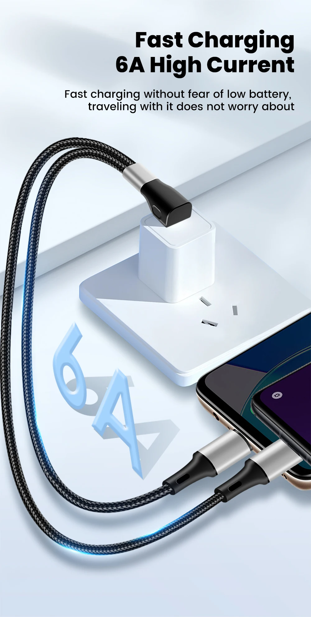 Comprar 0,6 M/1,2 M 6A USB A/USB C a Cable Dual tipo C Cable de carga rápida USB C de 66W para iPhone 15 16 Samsung Xiaomi Huawei Cable de codo