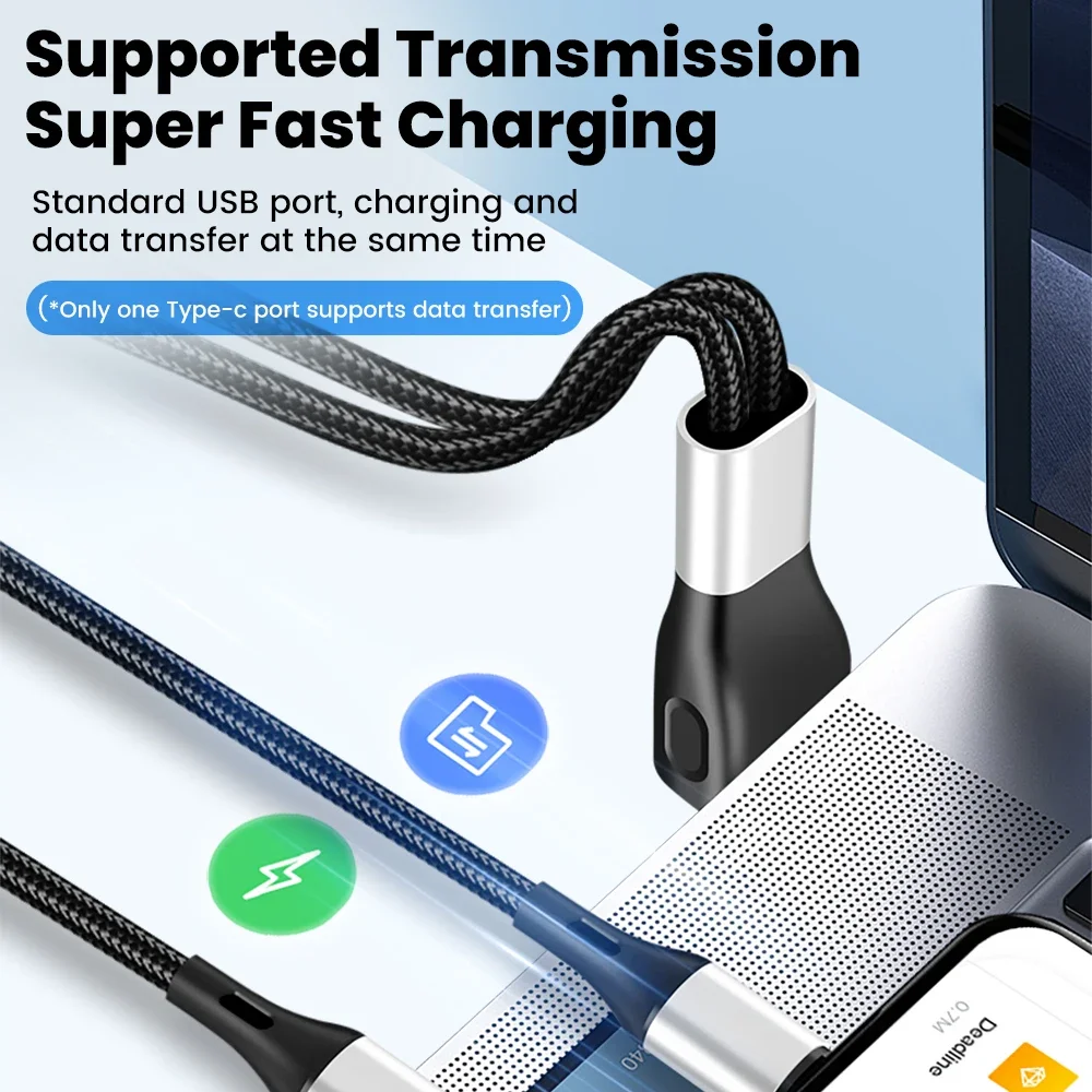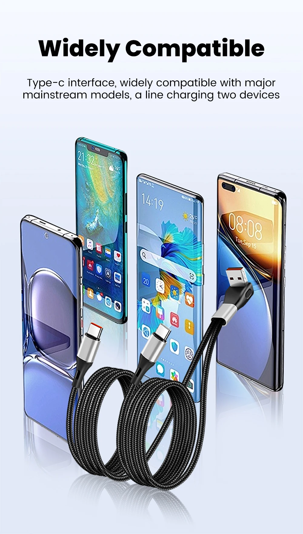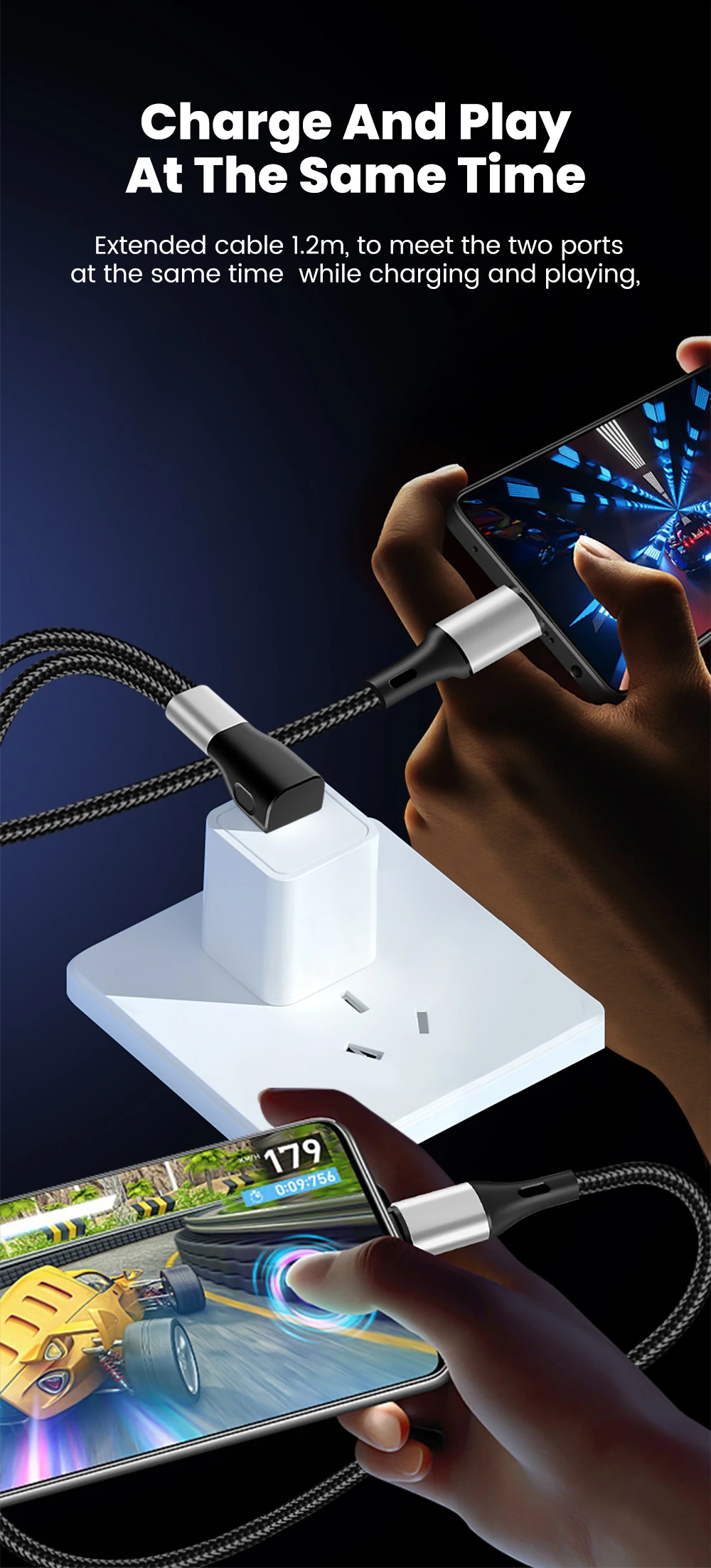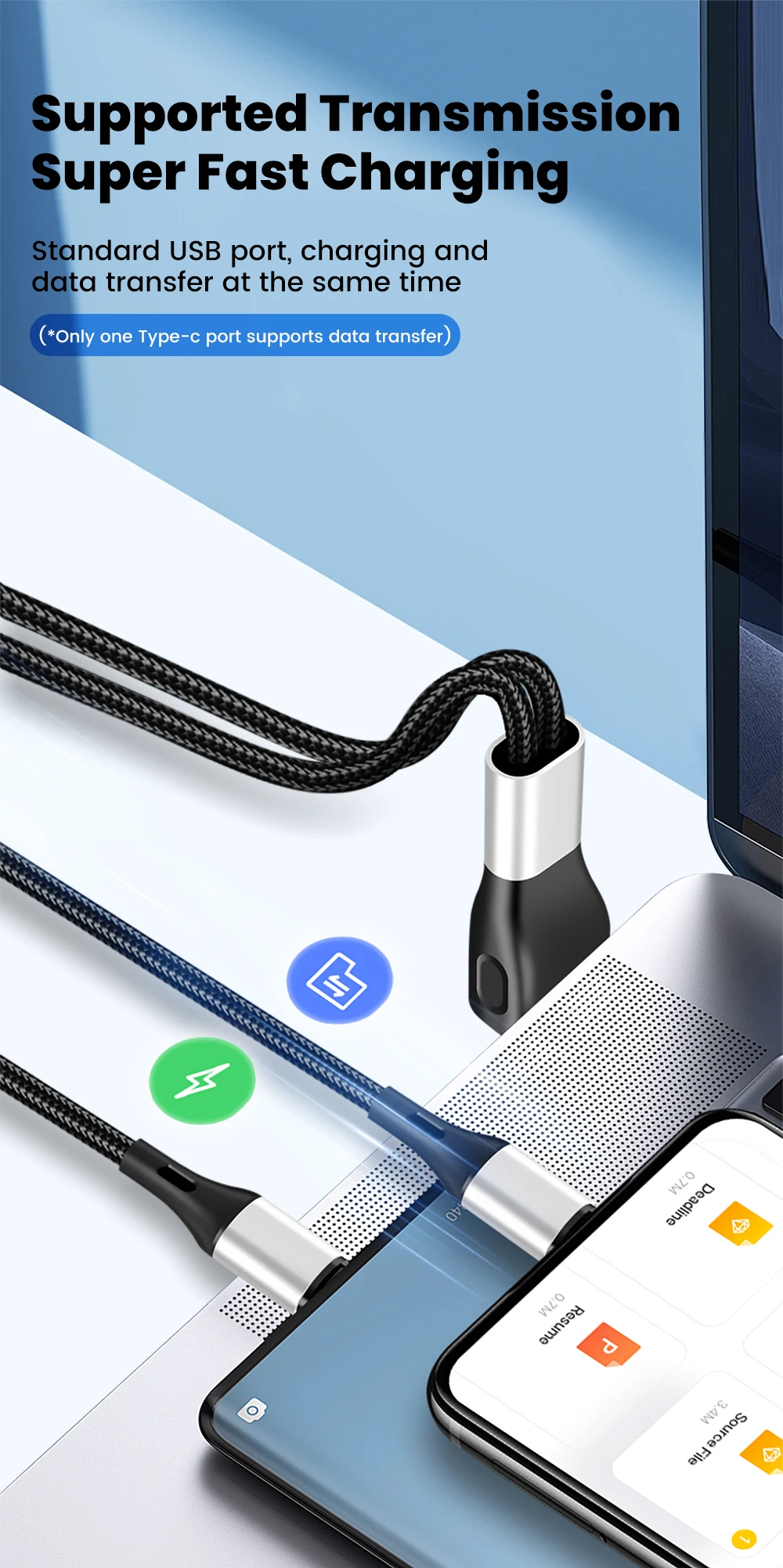 Comprar 0,6 M/1,2 M 6A USB A/USB C a Cable Dual tipo C Cable de carga rápida USB C de 66W para iPhone 15 16 Samsung Xiaomi Huawei Cable de codo