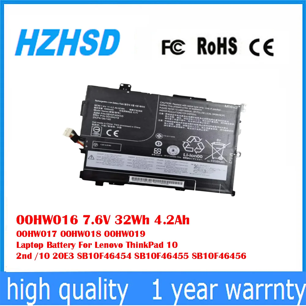 Comprar 00HW016 7,6 V 32Wh 4.2Ah 00HW017 00HW018 00HW019 batería del ordenador portátil para Lenovo 10 2nd /10 20E3 SB10F46454 SB10F46455