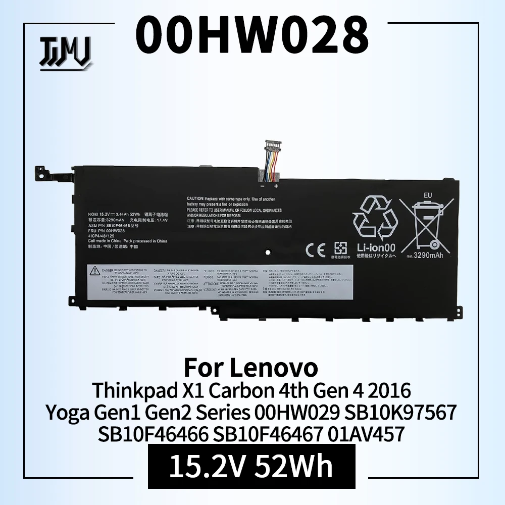 Comprar 00HW028 SB10K97566 01AV409 reemplazo de batería de ordenador portátil para Lenovo Thinkpad X1 Carbon 4th Gen 4 2016 / Yoga Gen1 Gen2 Series 00HW029 SB10K97567 SB10F46466 SB10F46467 01AV457