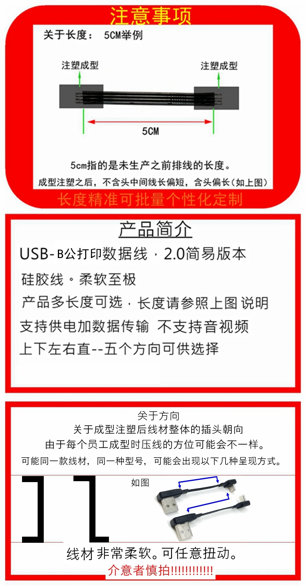 0.1-1m USB 2.0 A male USB B type B BM up and down left and right corner printers browser 90 degrees kable BM open cable