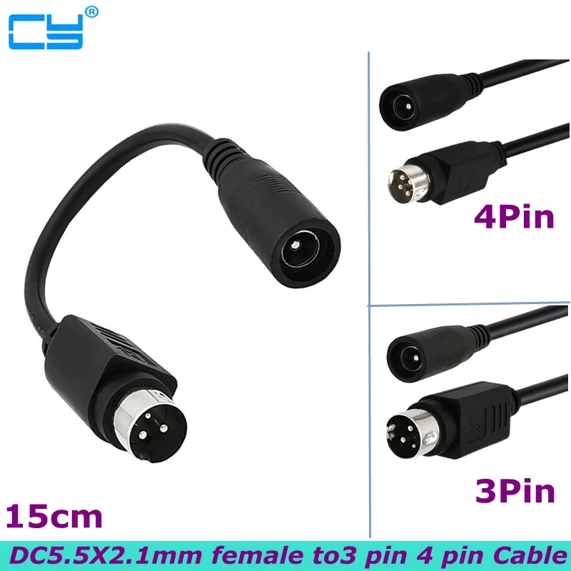 Comprar 0,15 m DC 5,5x2,1mm 5,5*2,5mm hembra a cabeza redonda 3 pines 4 pines enchufe macho Cable adaptador de corriente de impresora