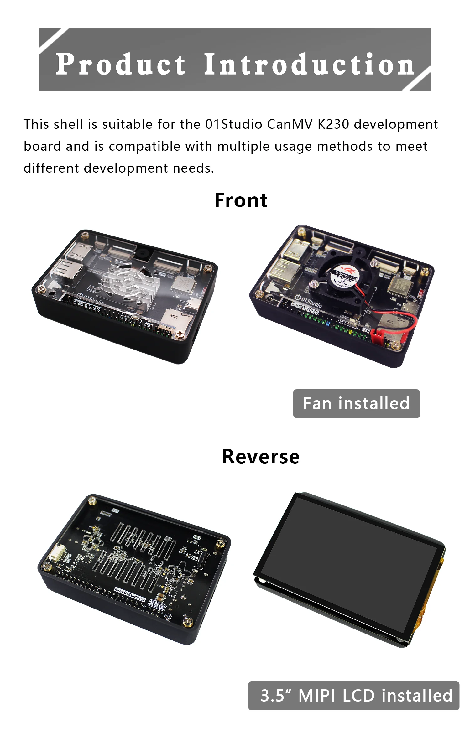 01Studio CanMV K230 AI caja de placa de desarrollo caja multiusos con ventilador y pantalla de 3,5 pulgadas