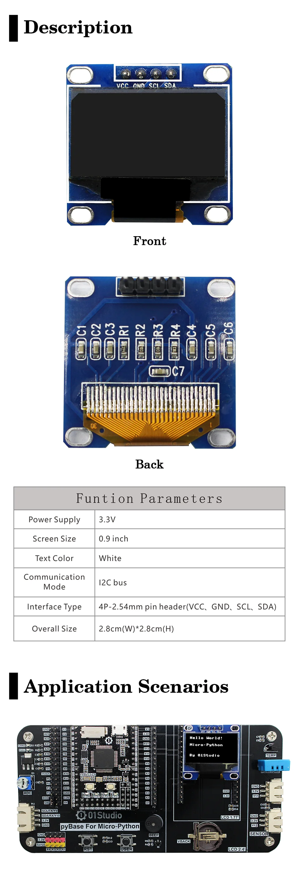 Comprar 01Studio-Módulo de pantalla OLED I2C de 0,9 "y 0,9 pulgadas, módulo de pantalla blanco de 4 pines, tablero Screnn para pyBoard Micropython