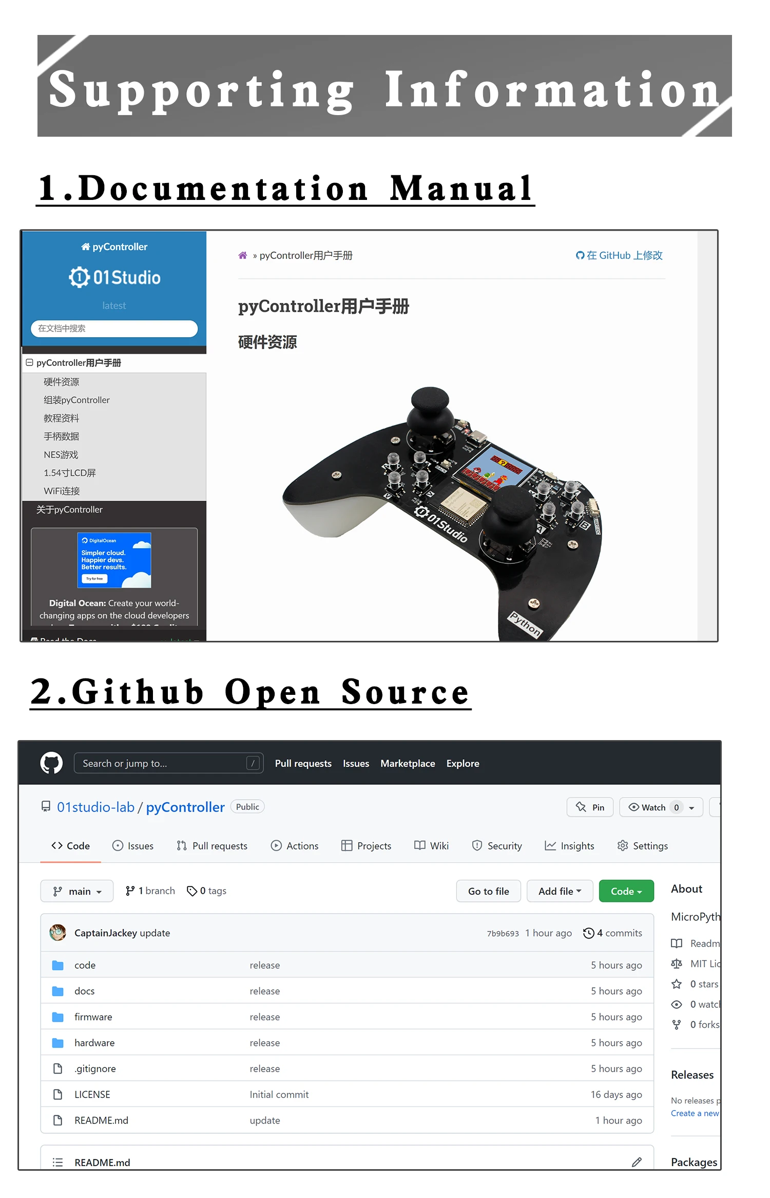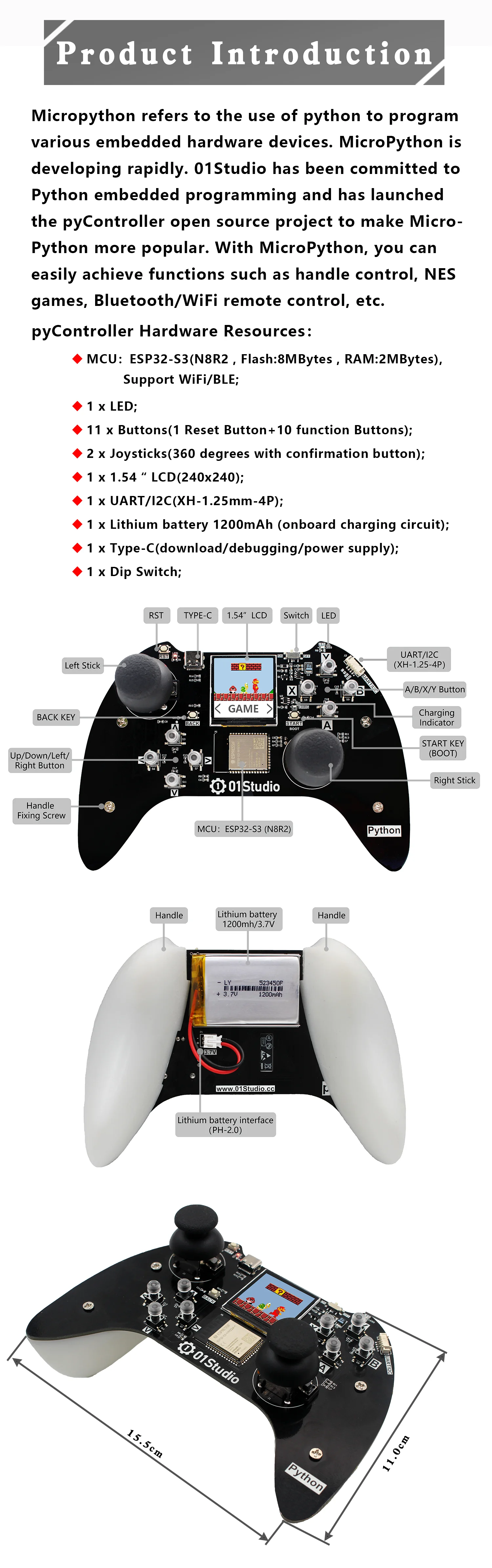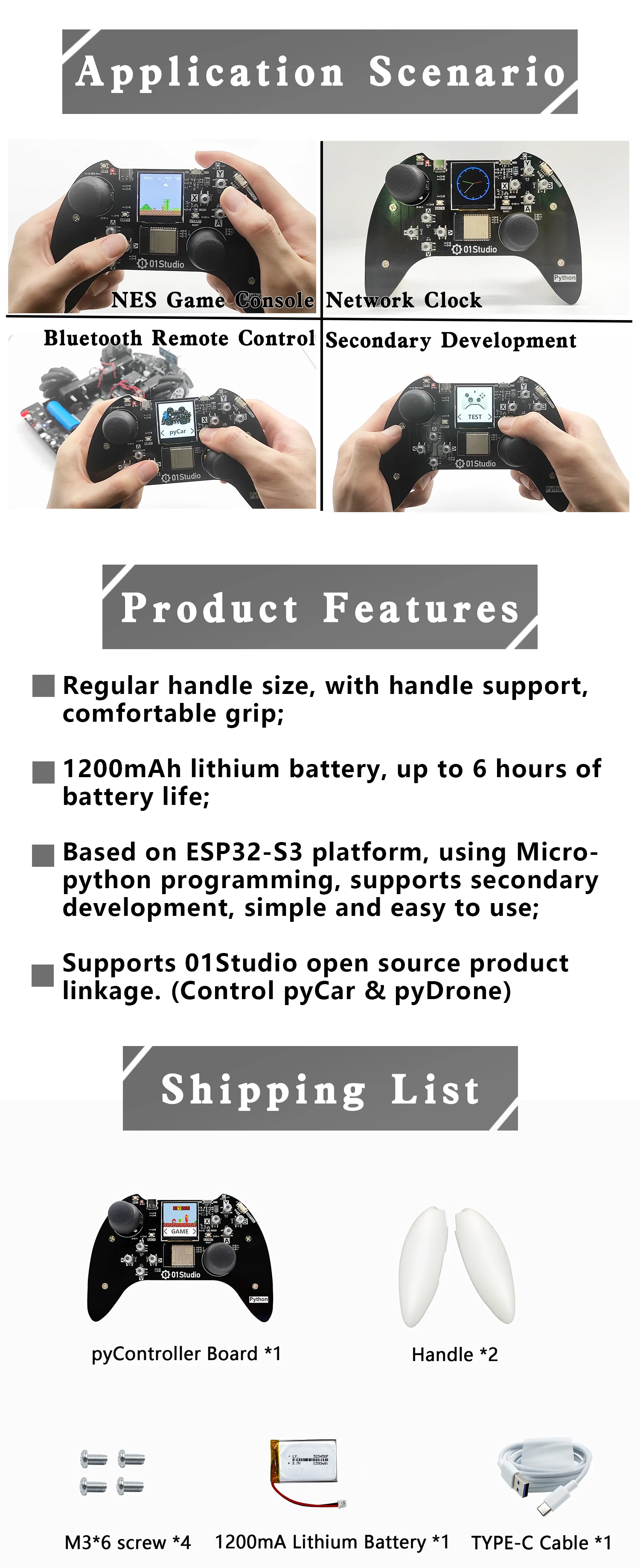 01Studio pyController Control remoto/controlador de juego ESP32-S3 Placa de desarrollo WiFi Bluetooth programación Python