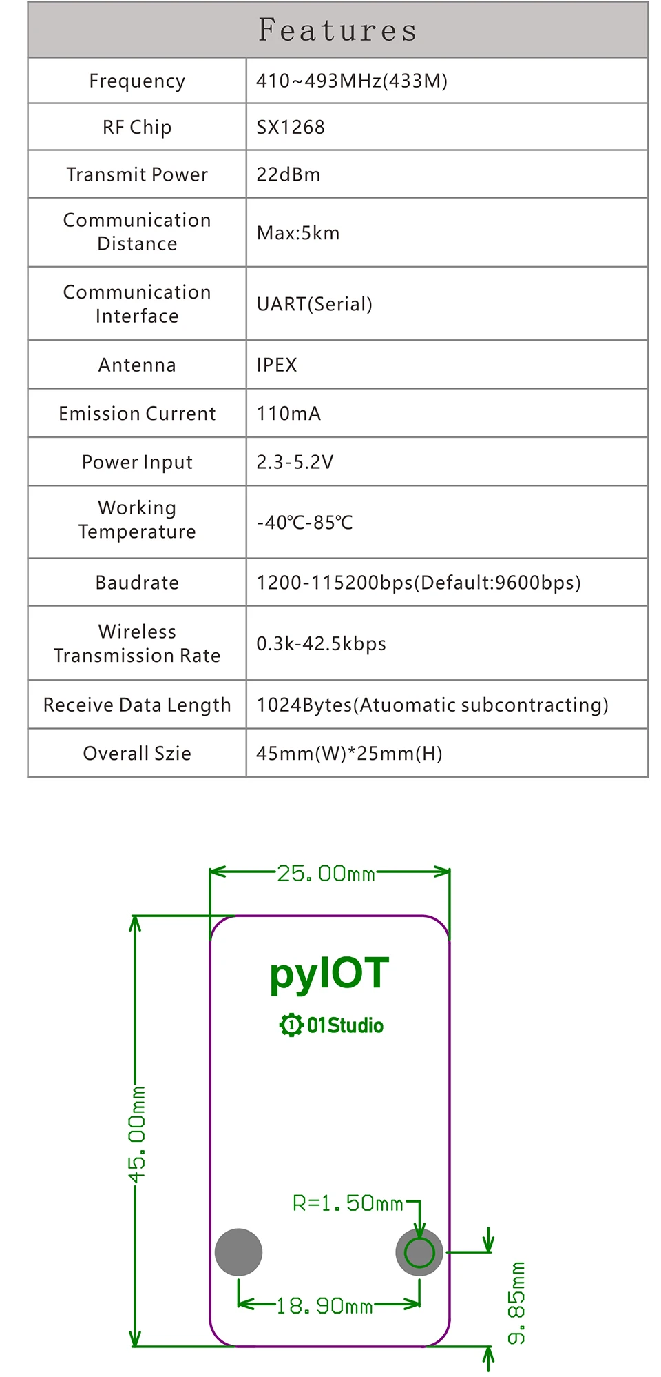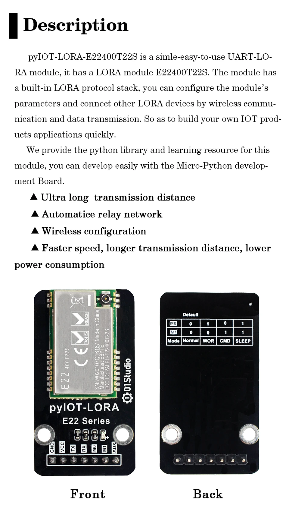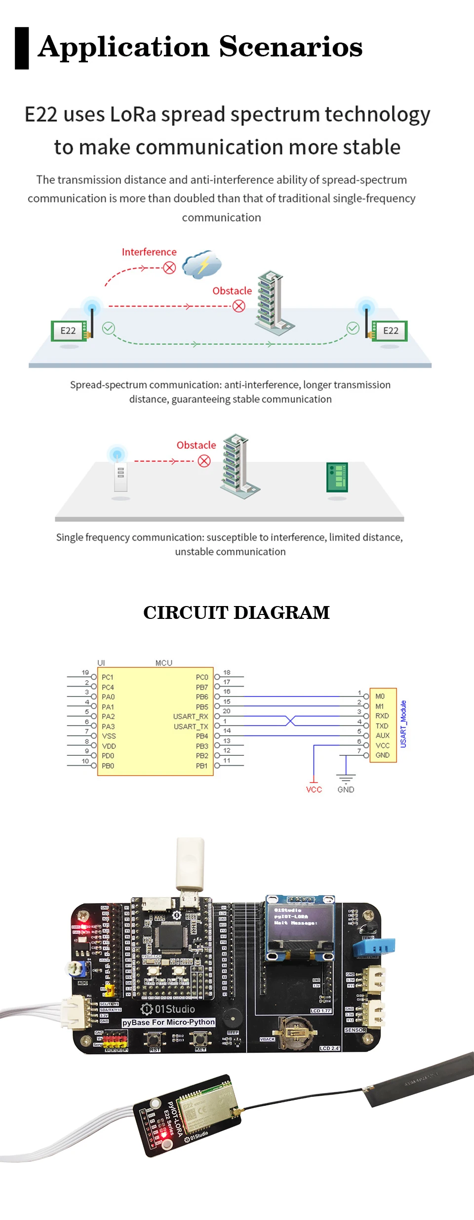Comprar 01Studio pyIOT-LORA módulo inalámbrico E22 433M SX1268 módulo UART MircoPython Placa de desarrollo de programación