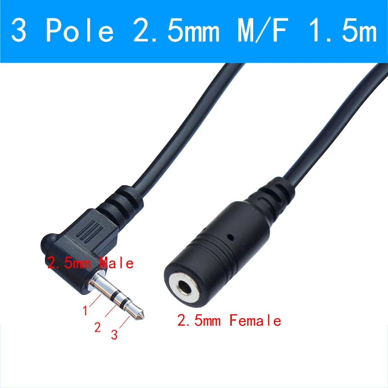 Comprar 0,2 m 1,5 m 3 m 2,5 mm macho a hembra Cable de audio de extensión de conector estéreo de 3 polos Cable adaptador de audio en ángulo recto 90