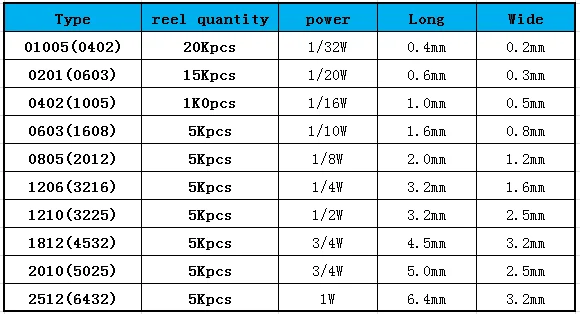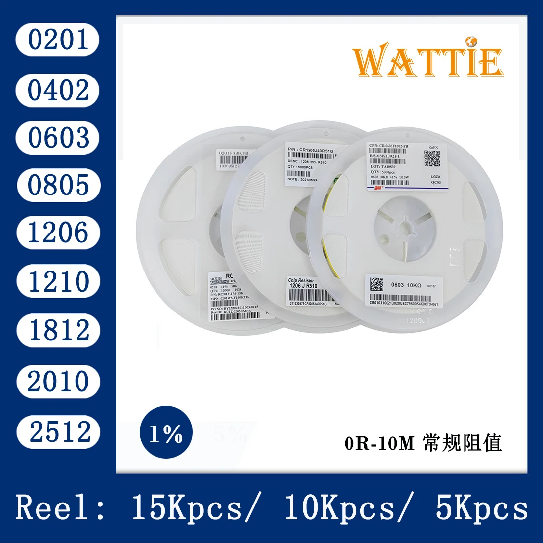 Comprar 0201 0402 0603 0805 1206 1210 1% F resistencia SMD todas las series 33R 47R 100R 33K 47K 100K 10M valor de resistencia arbitraria carrete completo
