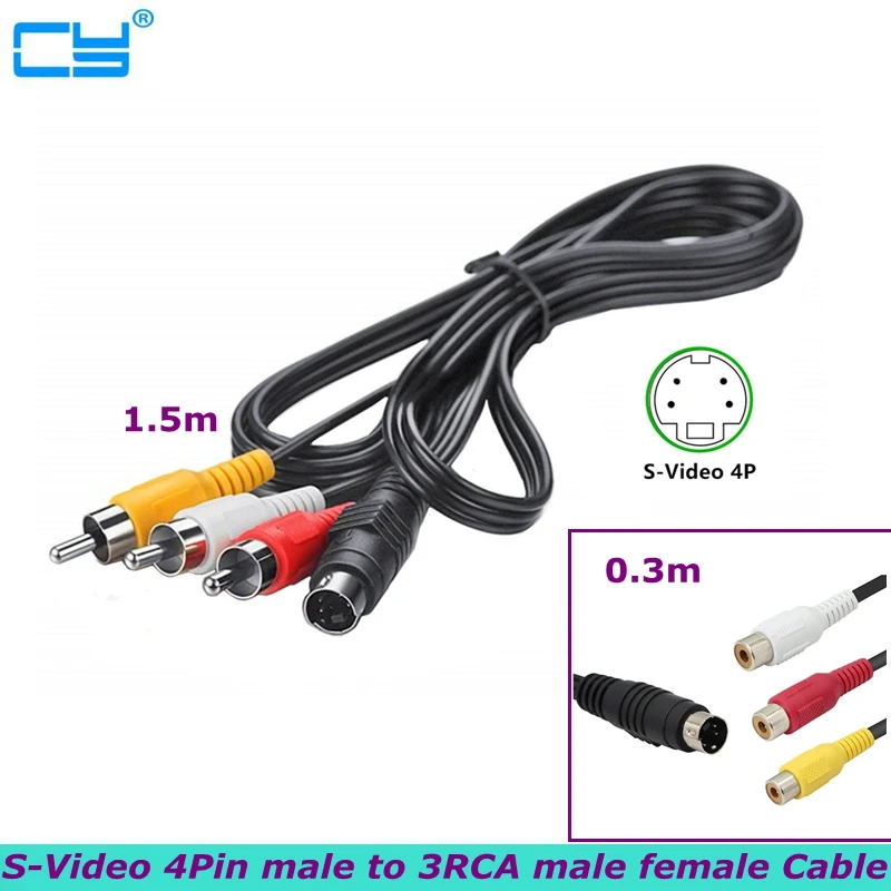 Comprar 0,3 m 1,5 m Mini DIN 4 pines s-video macho a 3 RCA macho hembra AV Audio Video adaptador Cable DVD PC TV