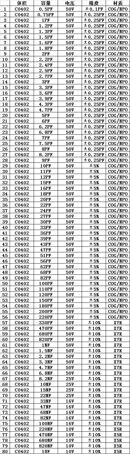 0402 80 valoresX50uds