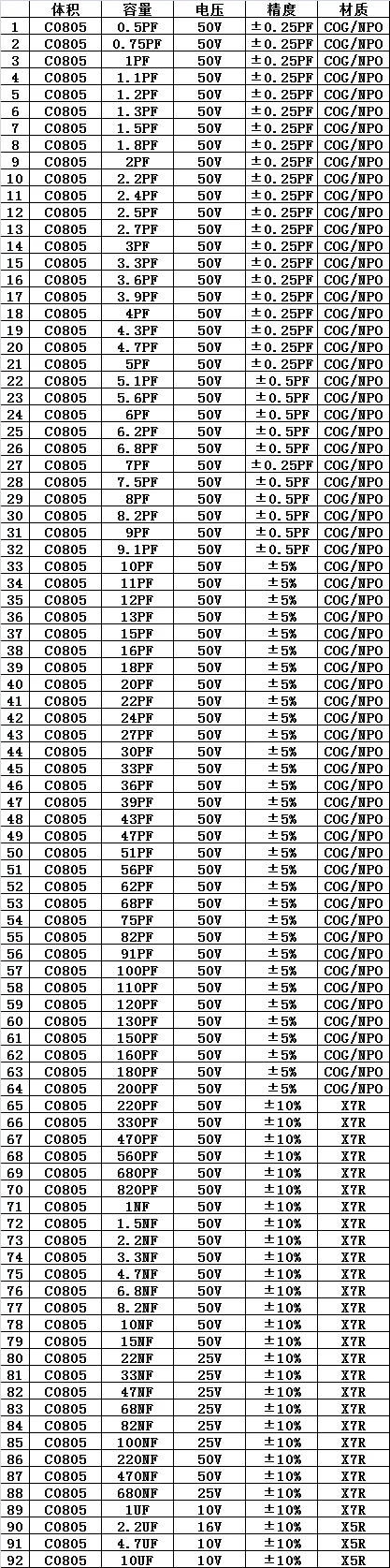 Libro de muestra de condensador 0805 SMD