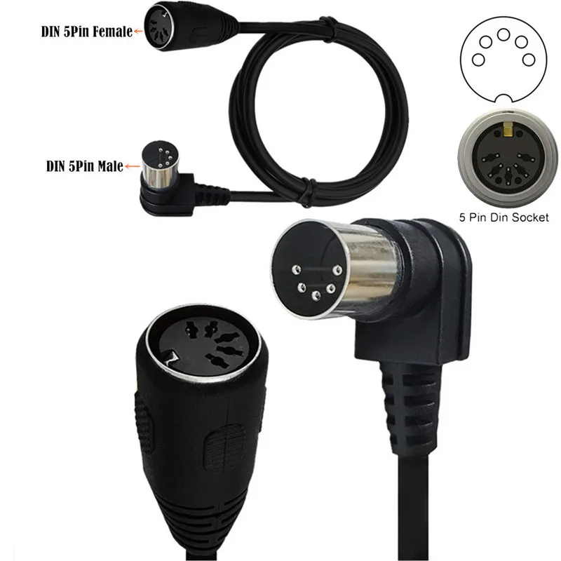Comprar 0,5 m/1,0 m/3,0 M 90 grados en ángulo MIDI Din 5PIN 5pin enchufe macho a hembra Cable de extensión de Audio adaptador