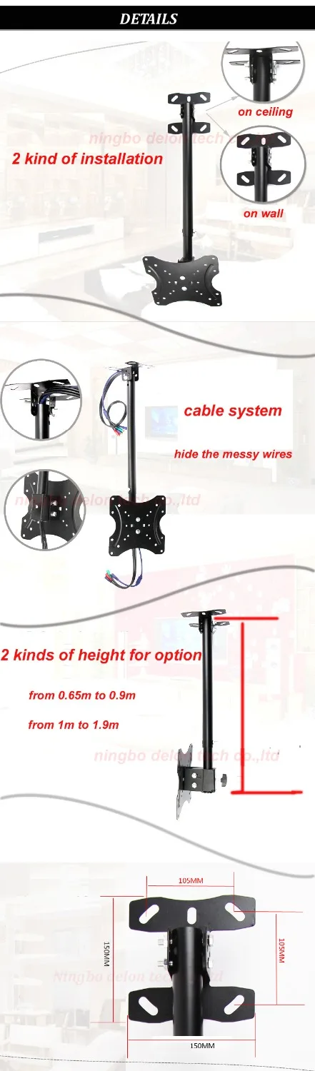 Comprar (0,65 m-0,9 m) DL-905X acero 200X200 30 "27 pulgadas 32 pulgadas 20 montaje en pared de TV inclinable soporte de techo lcd soporte led soporte de TV de plasma