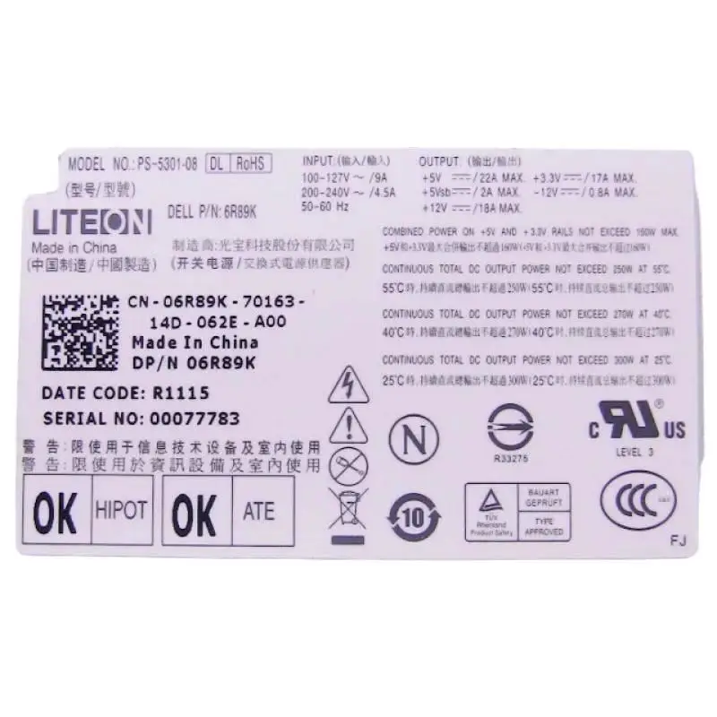 Comprar 06R89K 6R89K PS-5301-08 PARA DELL Inspiron 570 Fuente de alimentación de escritorio de 300 W