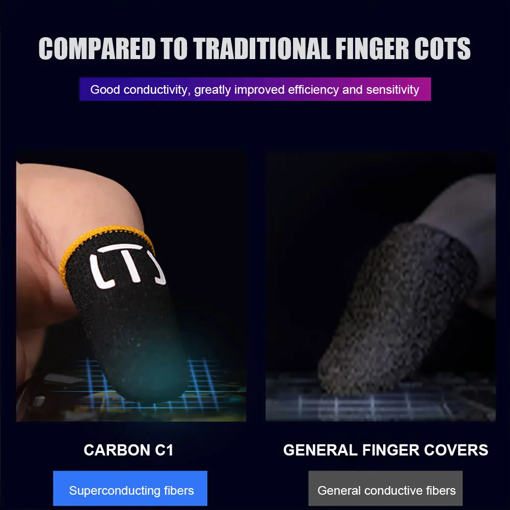 1. Material de alta calidad: Estas cunas para los dedos están hechas de fibra de carbono/fibra de iones de plata/fibra de secado rápido y algodón, que son transpirables y absorbentes del sudor, sensibles al tacto, y 0 toque roto durante la operación. Las habilidades del rey se liberan rápidamente y puedes jugar fácilmente para PUBG