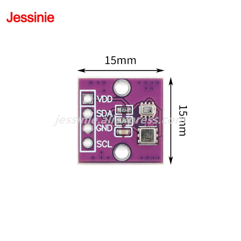 Parámetros del producto 1.Voltaje de funcionamiento: CC 2,0-5 V 2.Tipo de interfaz: I2C 3.Rango de presión: 300-1100 hPa 4.Rango de temperatura: -40-85°C 5.Rango de humedad: 0-100% RH 6.Dimensiones: 1,5*1,5 mm