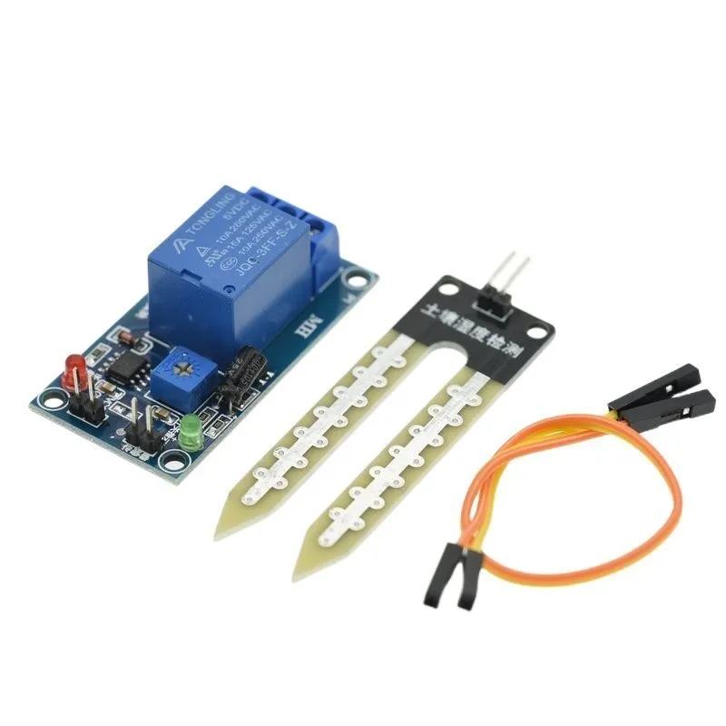 Al ajustar el valor umbral de humedad del suelo, el control del potenciómetro puede navegar automáticamente, regar jardines automáticamente, controlar la humedad del suelo en casa en macetas, juegos electrónicos, etc., con relés de potencia, se pueden controlar dispositivos de alta corriente, es menor que el relé de arranque automático de humedad establecido, es mayor que la humedad establecida se desconecta automáticamente y hay una función de retardo para resolver el estado crítico sin retardo, la humedad del relé se mantiene parpadeante. El problema es un sistema de control de humedad del suelo simple y práctico.