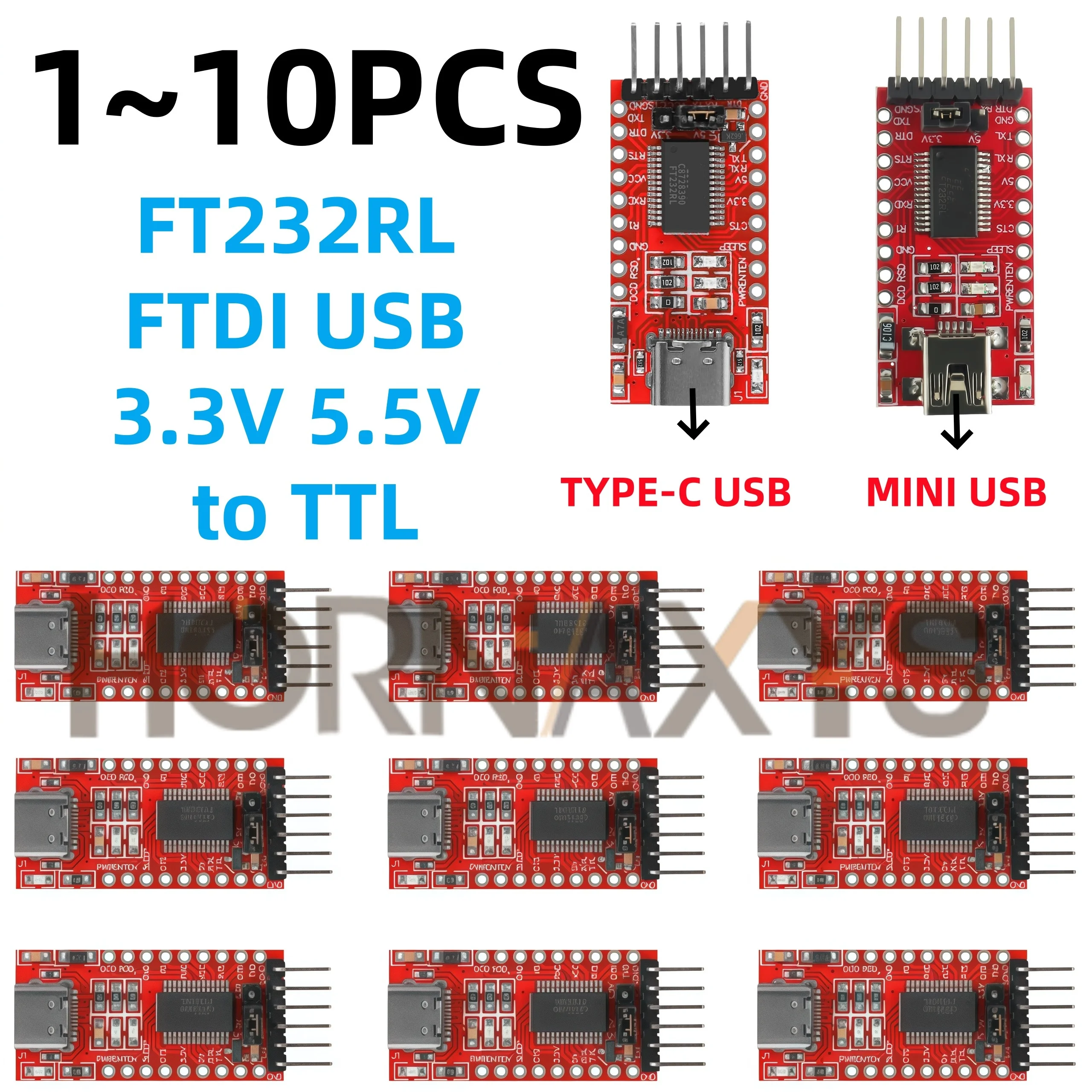 Comprar 1-10 uds/FT232RL FTDI USB 3,3 V 5,5 V a TTL módulo adaptador serie para Arduino FT232 Pro Mini puerto USB a TTL 232 Mini/tipo-c USB